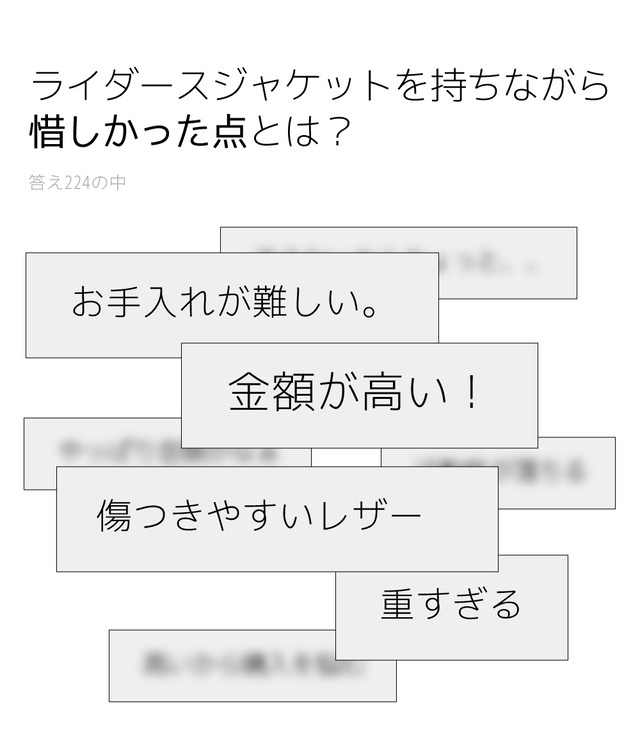 どんなレザージャケットを作ろうとしても、価格とクオリティに自信があった私たちは、ポピュラーなデザインと価格、そして改善する点を補うために、小さな投票を行いました。