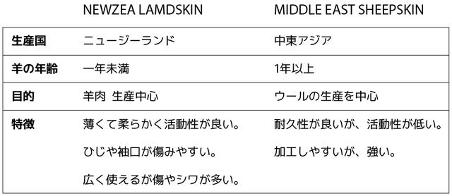 左: CCC LEATHERの「NAPPA LAMBSKIN」 右 : NEWZEA TYPE LAMBSKIN