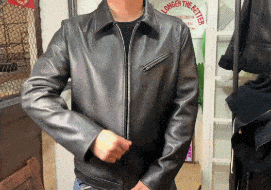 ライダースジャケットを長く着ると型の特性上、ファスナーがある一番下の部分が浮いたり伸びてしまいます。