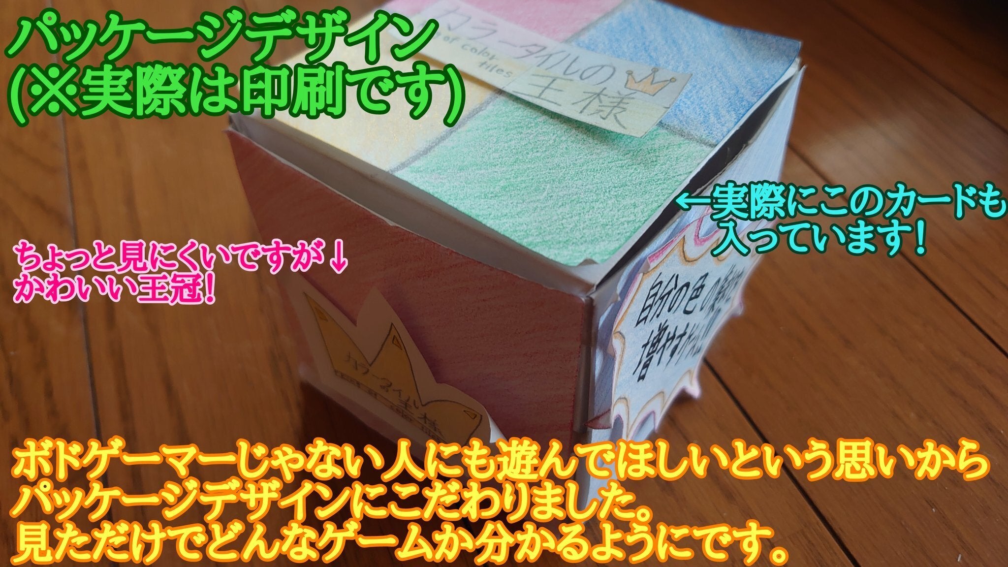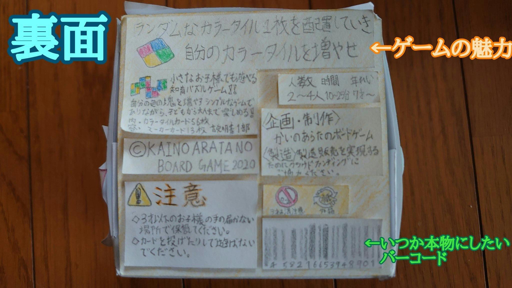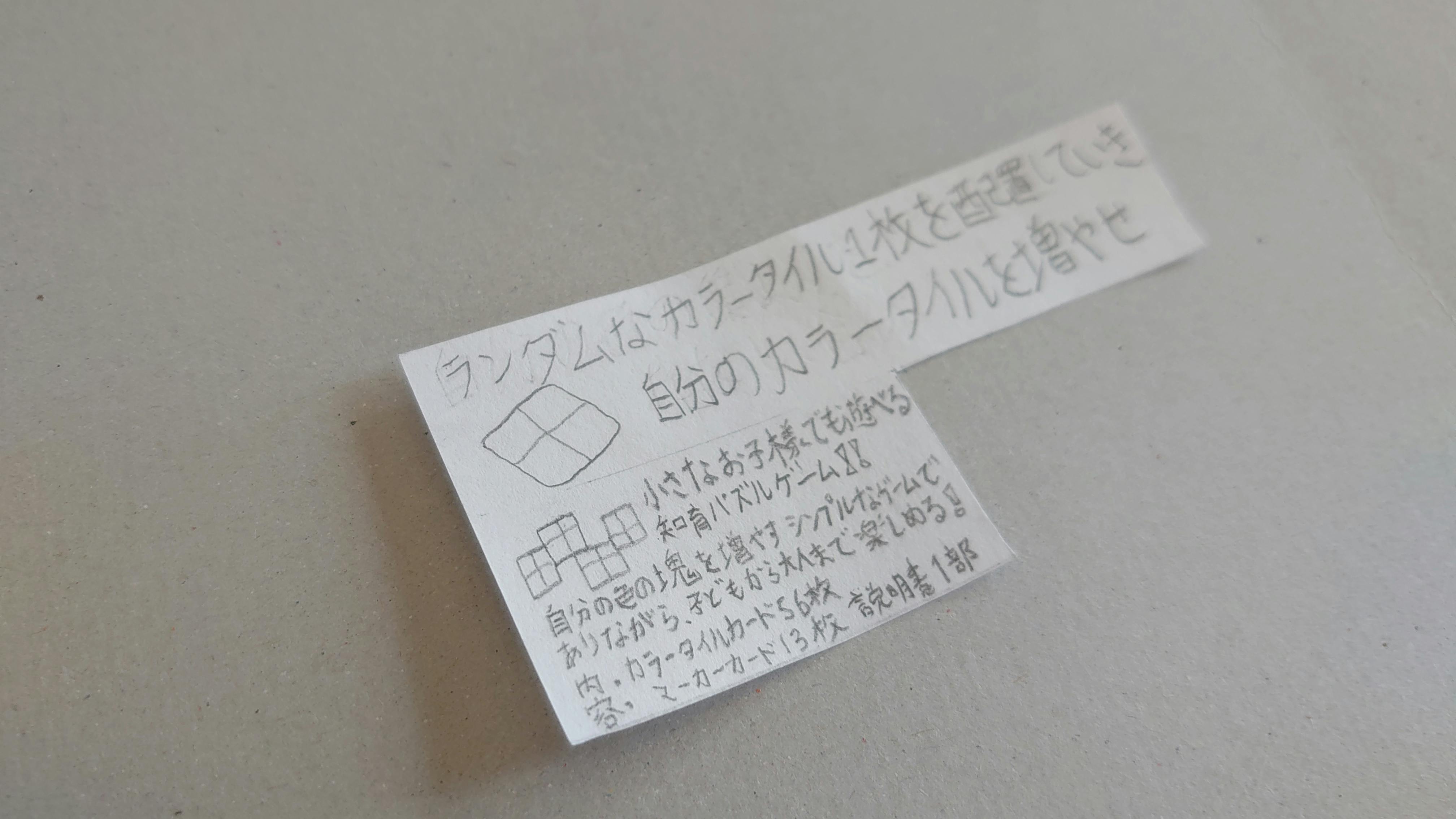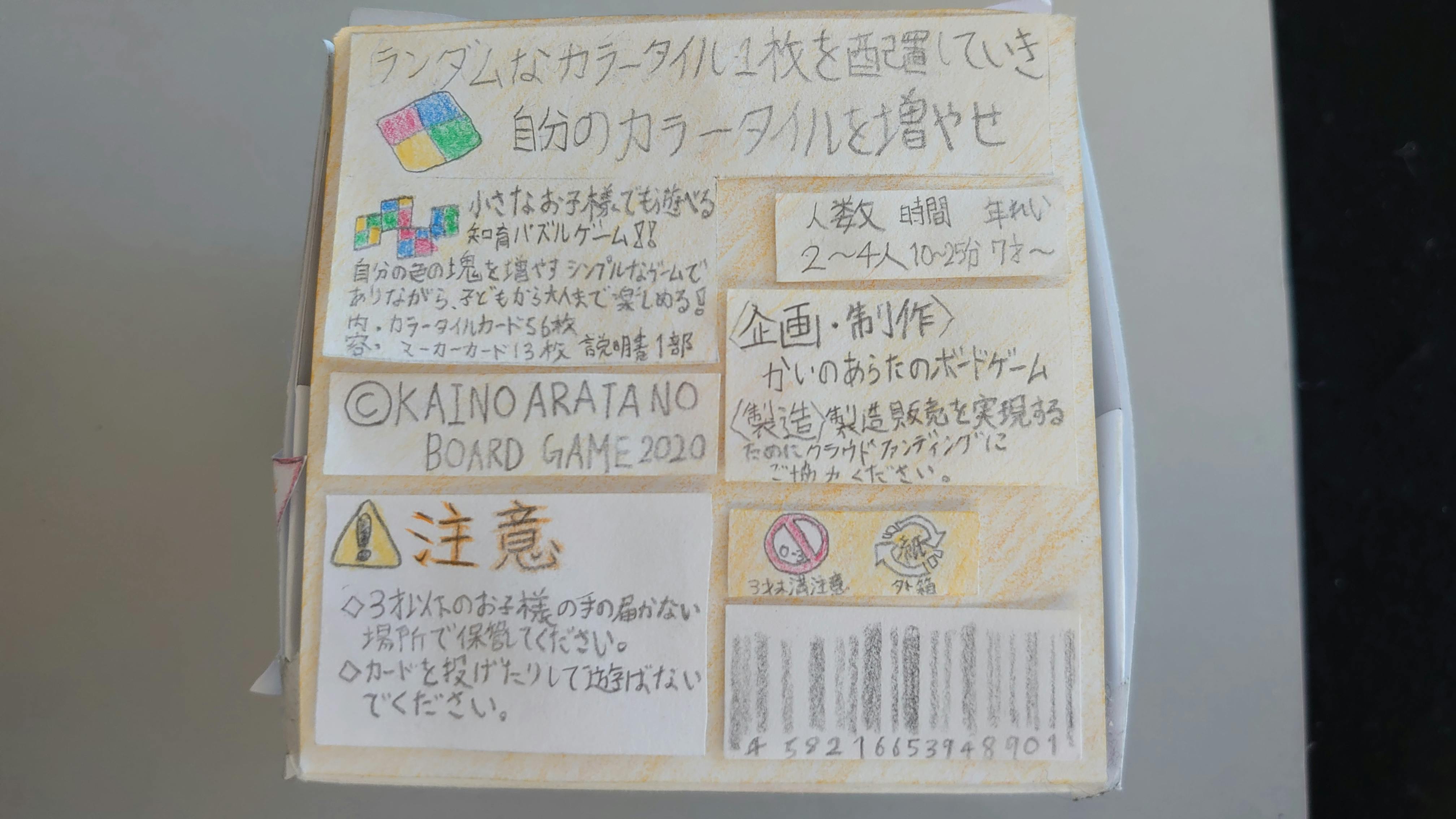 彼いわく、将来はボードゲームの仕事に就いて1人でも多くの子ども達を笑顔にしたいのだとか。そんな思いから将来の夢への実現の第一歩として今回「カラータイルの王様」が制作されました。