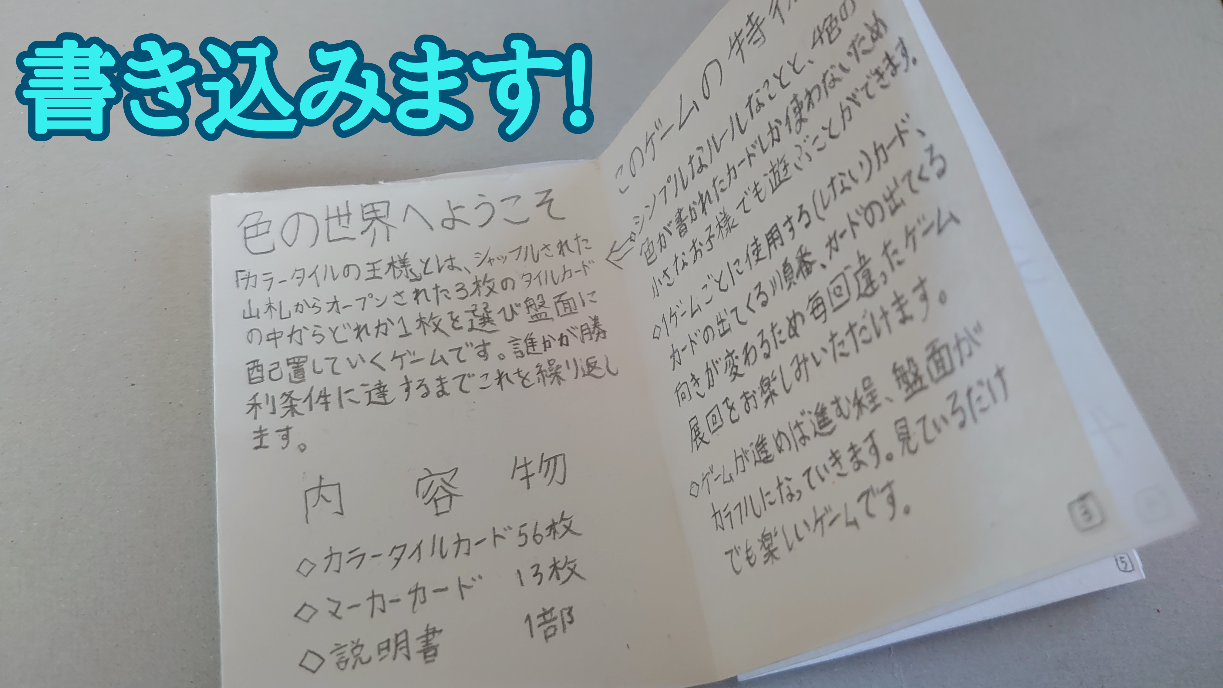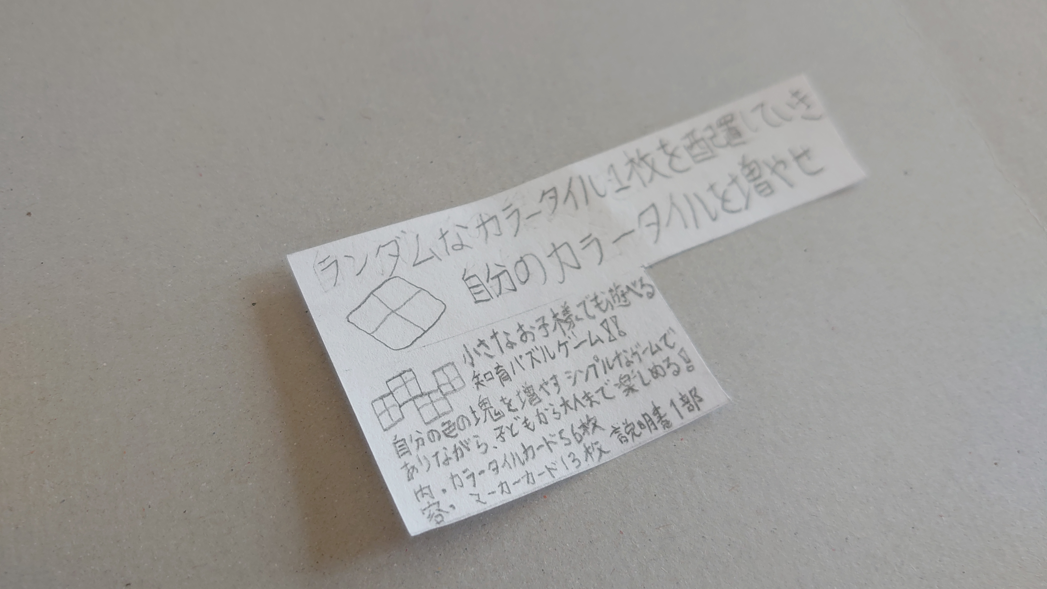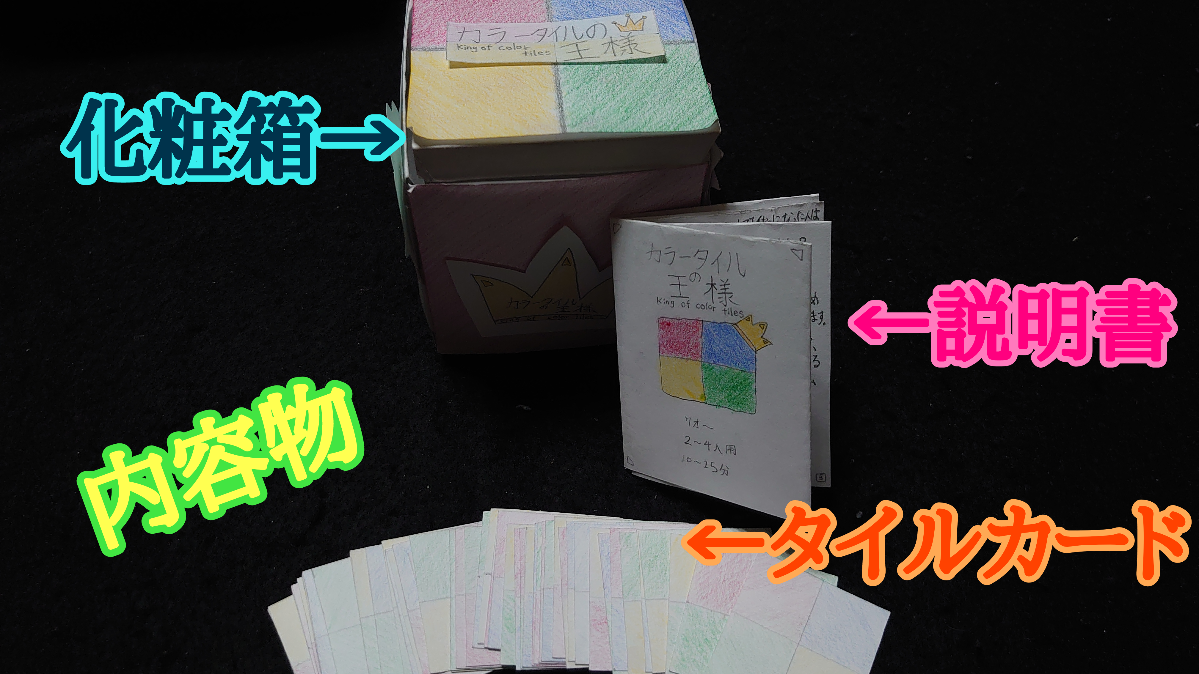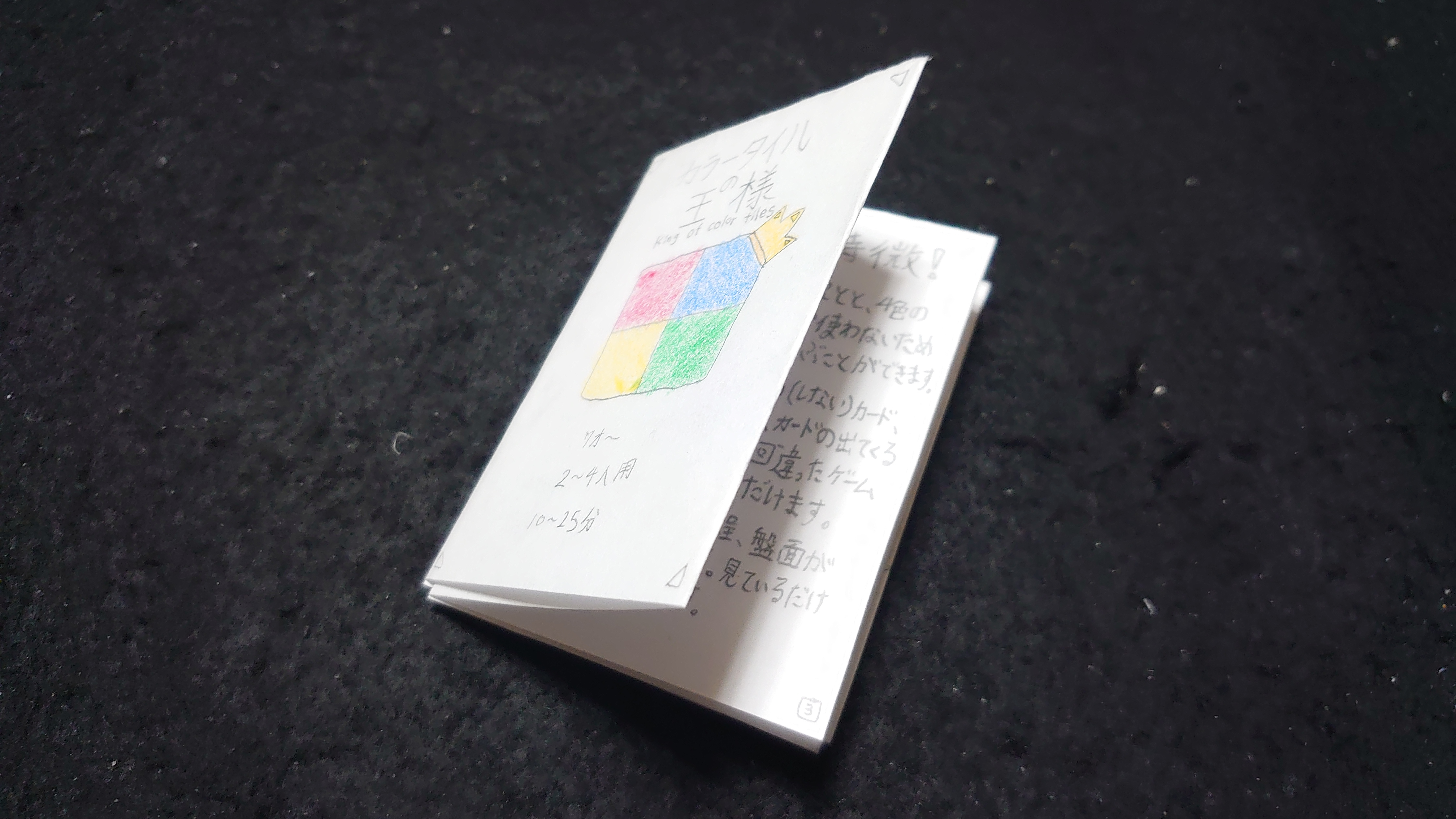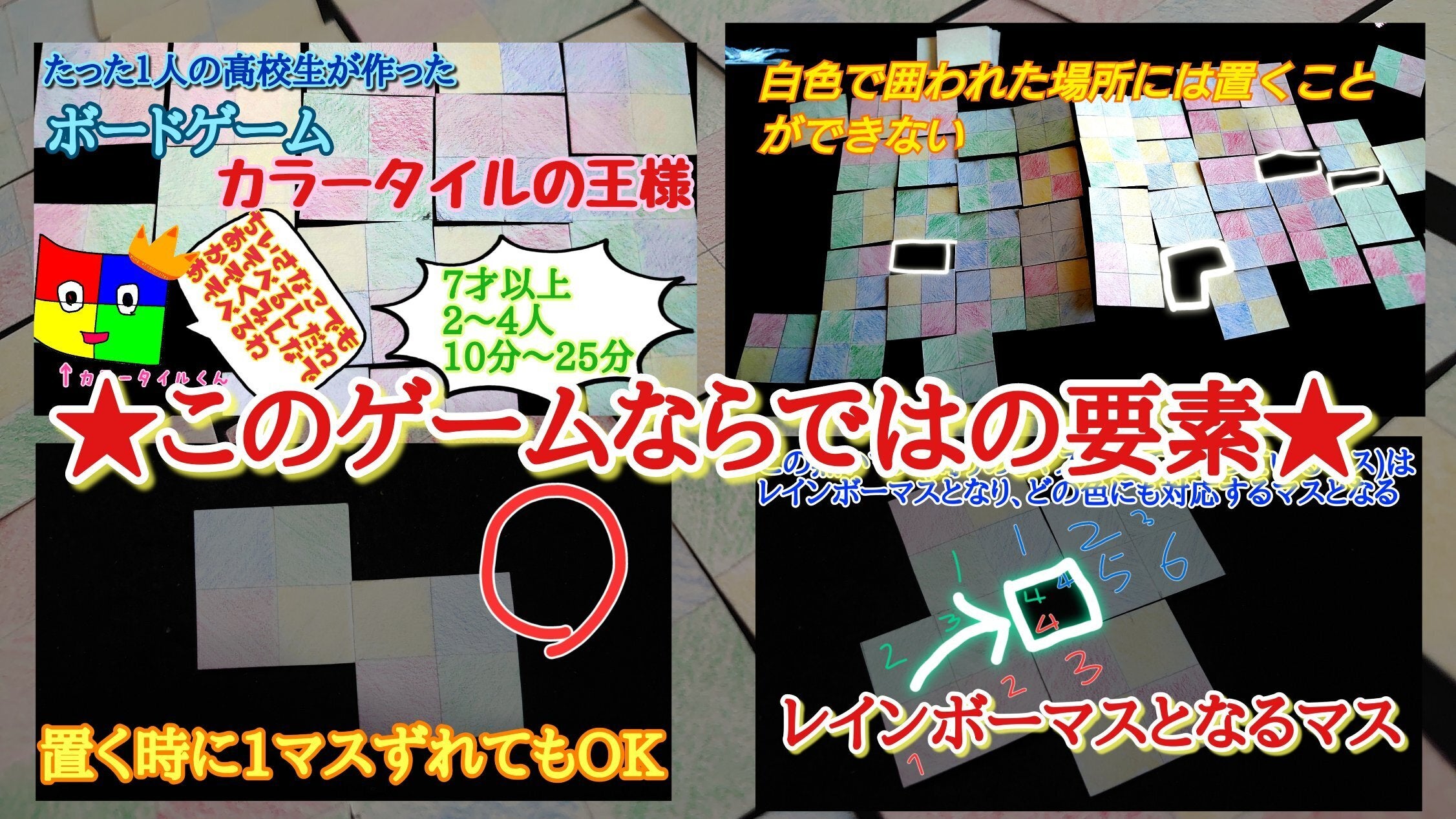 彼いわく、将来はボードゲームの仕事に就いて1人でも多くの子ども達を笑顔にしたいのだとか。そんな思いから将来の夢への実現の第一歩として今回「カラータイルの王様」が制作されました。