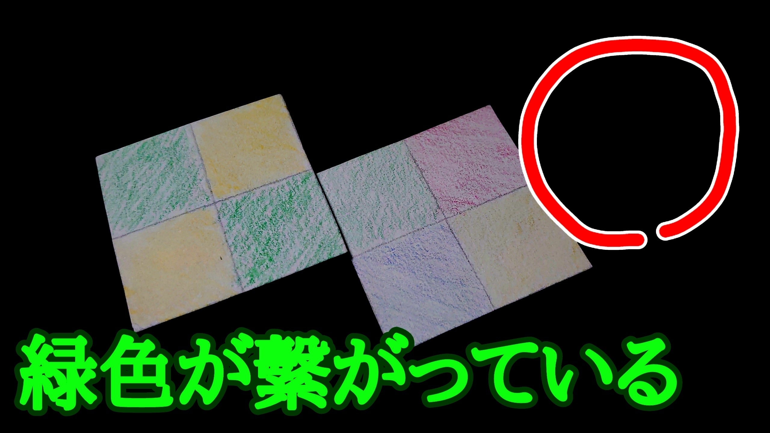 2.必ず他のカードと隣接して置き、この時必ず隣接しているマスの中で1マス以上は同じ色(自分の色でなくてもOK)でなければいけない。