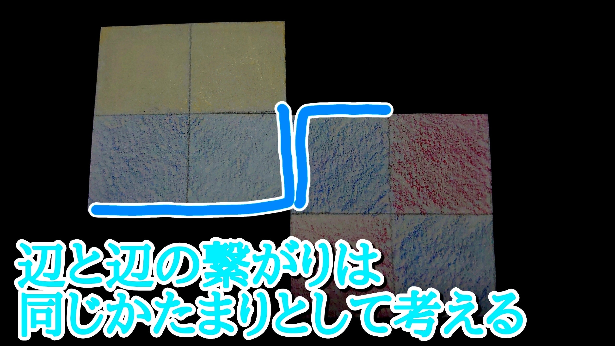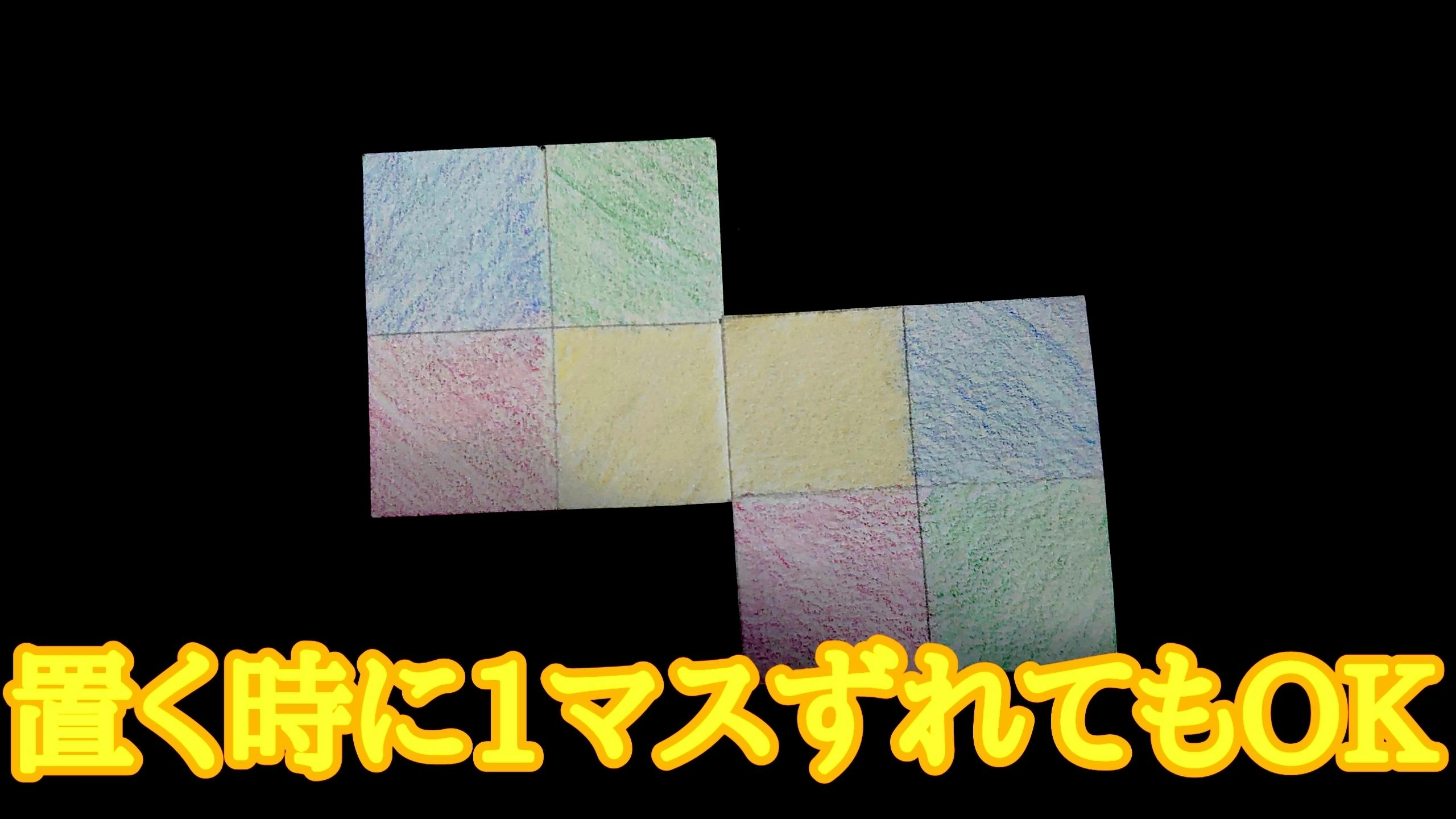これによってカードの辺と辺をぴったりと(カラータイルの王様で言ったら1マスずらさずに)置くことはもちろんですが、1マスずらして置くことが実現しました。