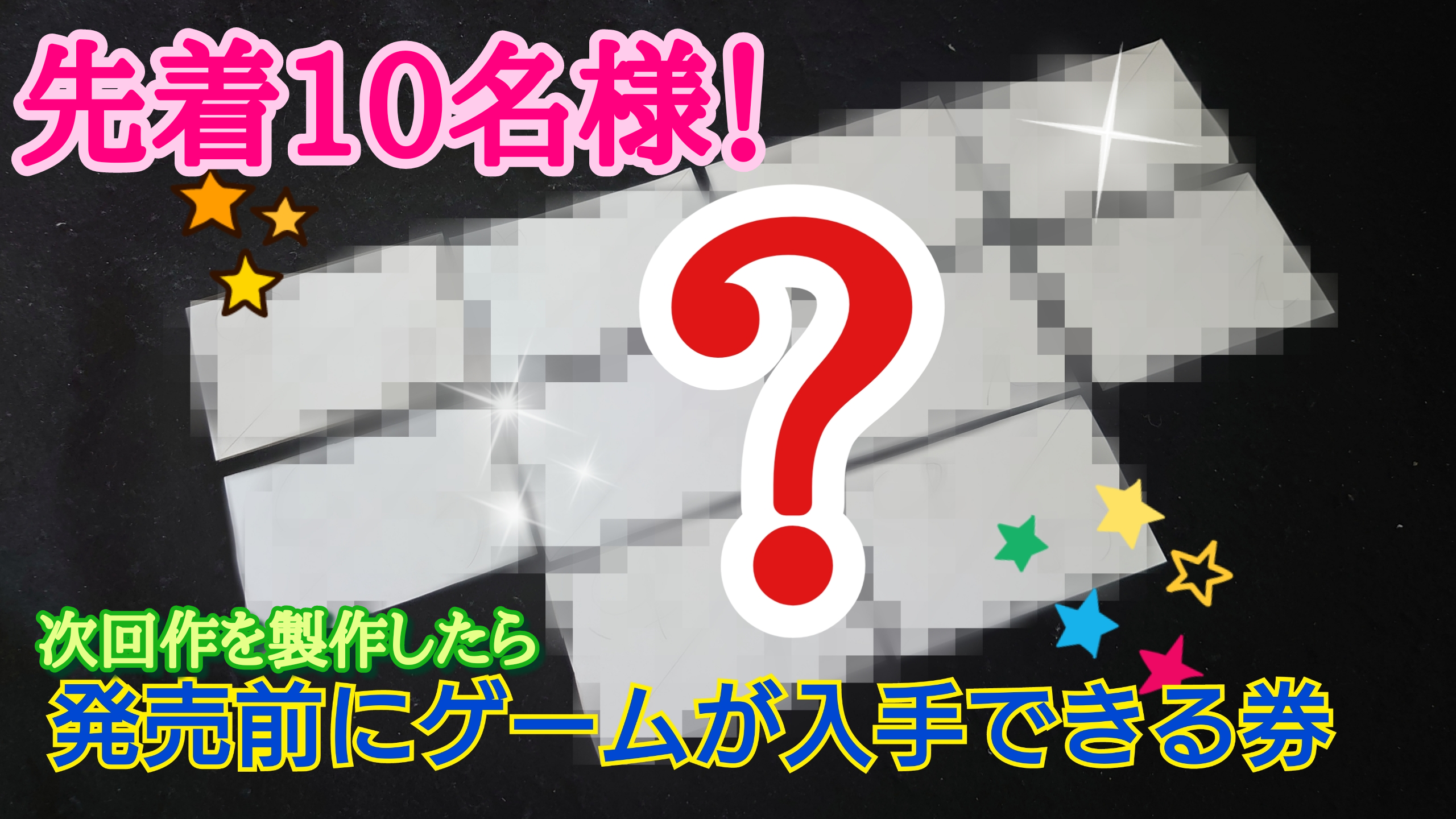 この度、2000円〜10000円支援コースのどれかを支援購入していただいた方先着10名様に次回作を製作し販売した際にそのゲーム本体1個を無料でプレゼントする券を同梱することにしました!! 3000円コースの場合、1個あたり1500円でゲームが買えてしまいます!また、誰よりも早く発売前にゲットできます。支援コースの購入金額は問いません。先着順です。