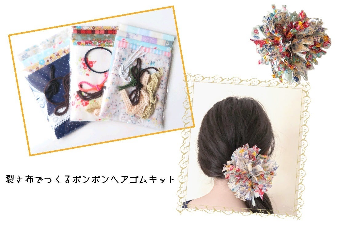 布の加減で中高生でもお洒落に使える、裂き布で作るボンボンヘアゴムです