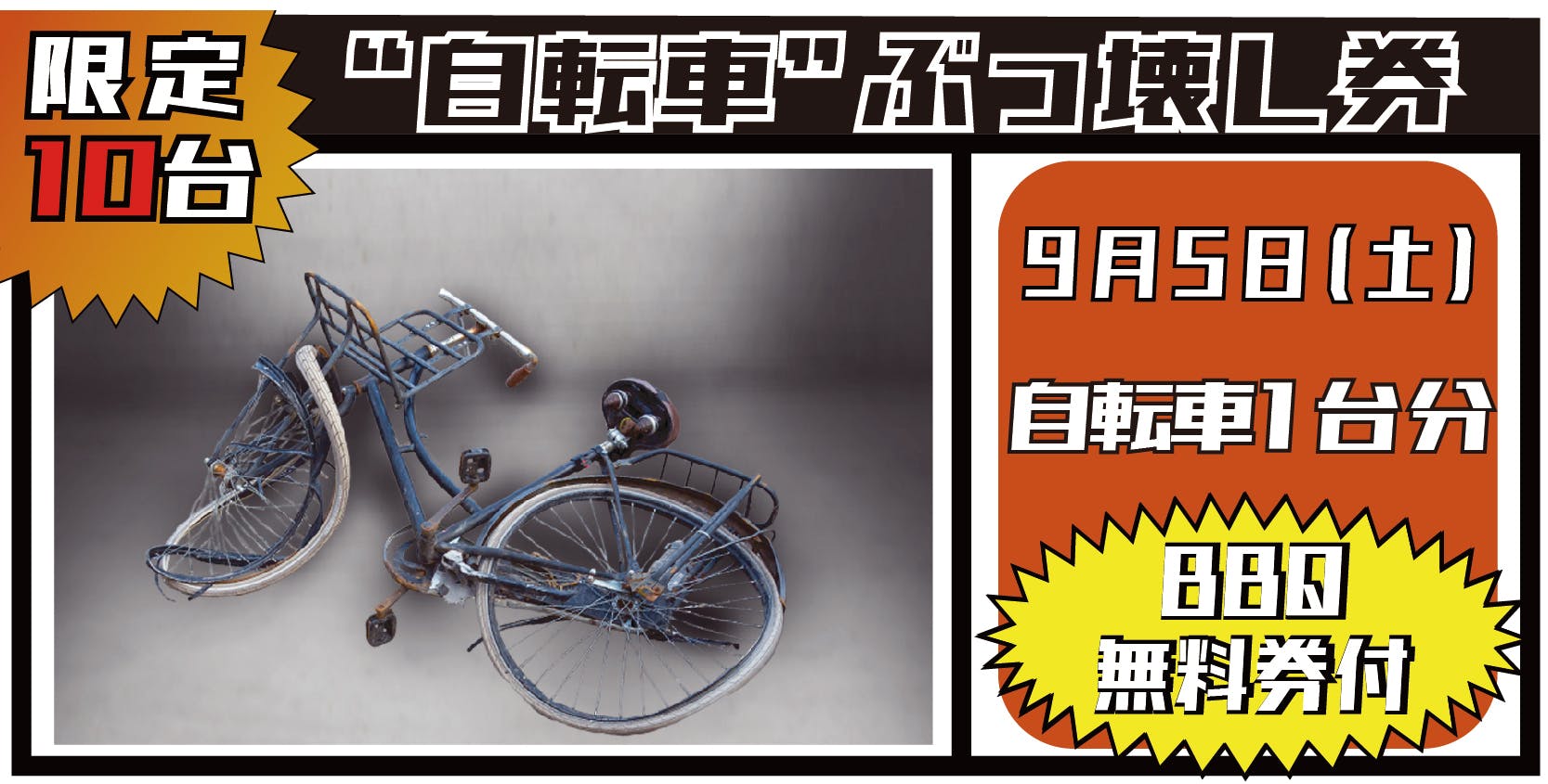 それ以外にも、バイク、自転車、食器、小型家電が壊せる世界初の「破壊のお祭り」となります。