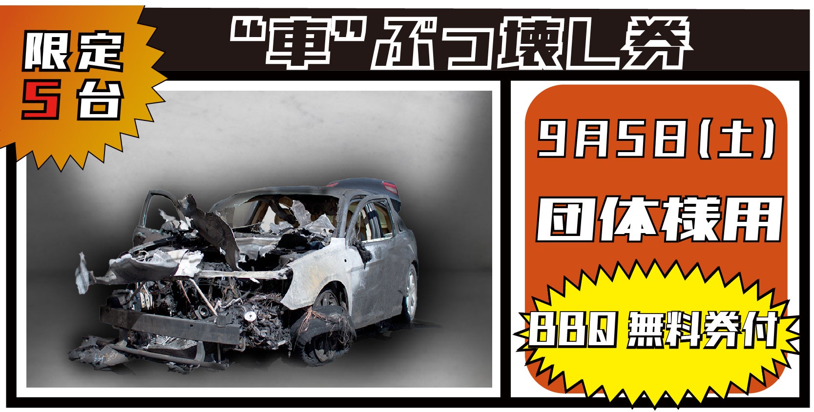 【"車"ぶっ壊し券&BBQ招待券】<1名様用>*限定5台分(50人)