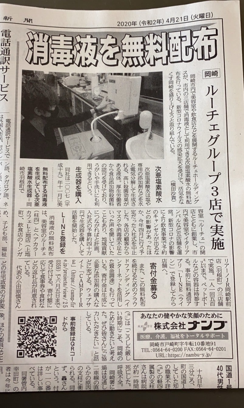 2020/04/28 19:37愛知東海新聞様に取材して頂きました。ありがとうございました。まだまだ頑張ります! もっと見る