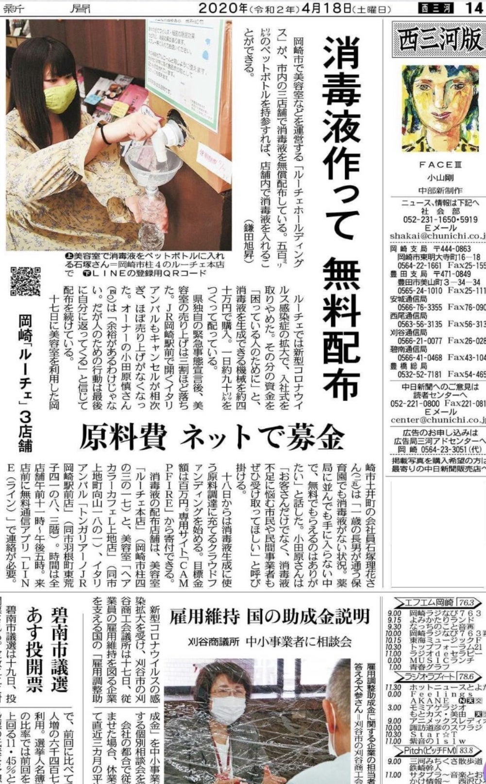 愛知東海新聞様に取材して頂きました。ありがとうございました。まだまだ頑張ります!