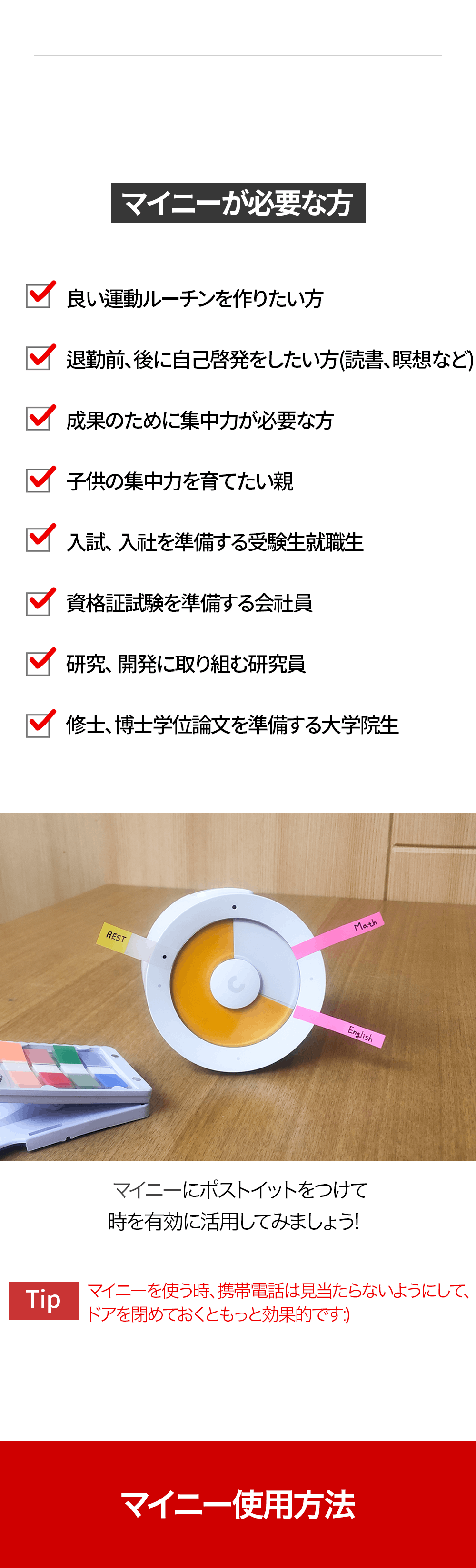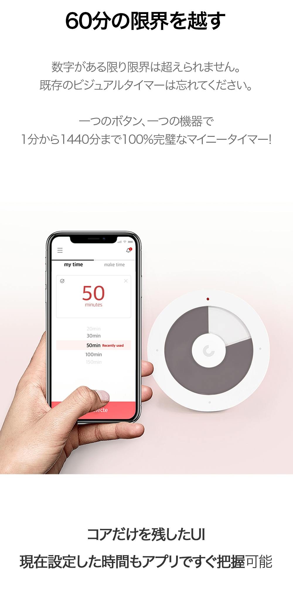 タイマーが作動する途中、製品上部のボタンを軽く押すと一時停止が可能です。