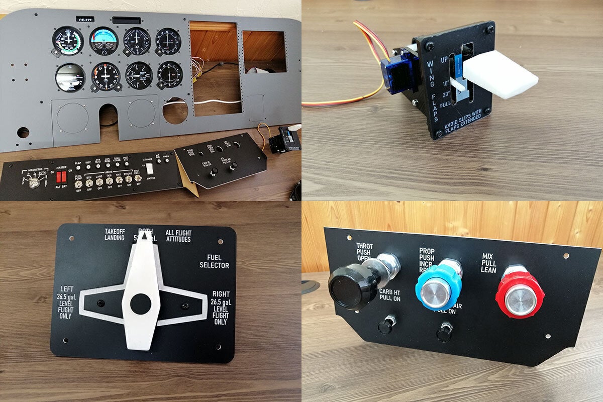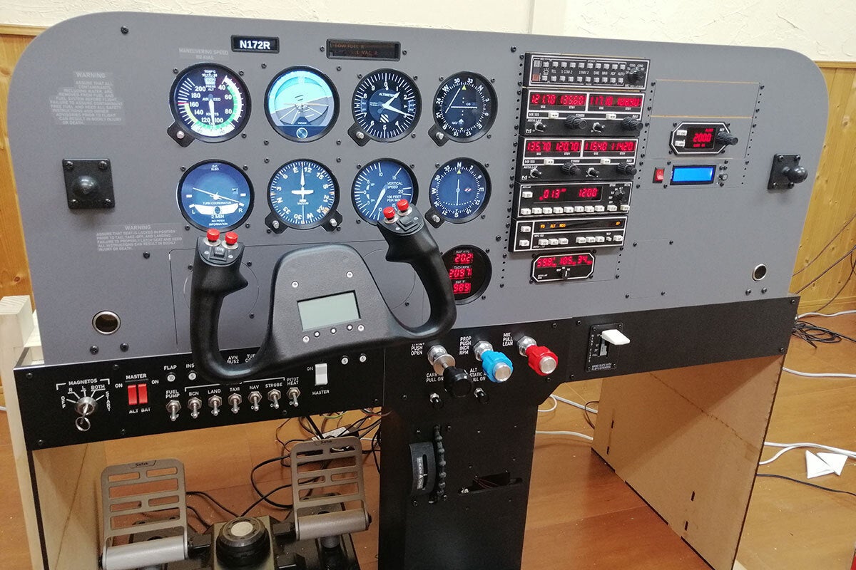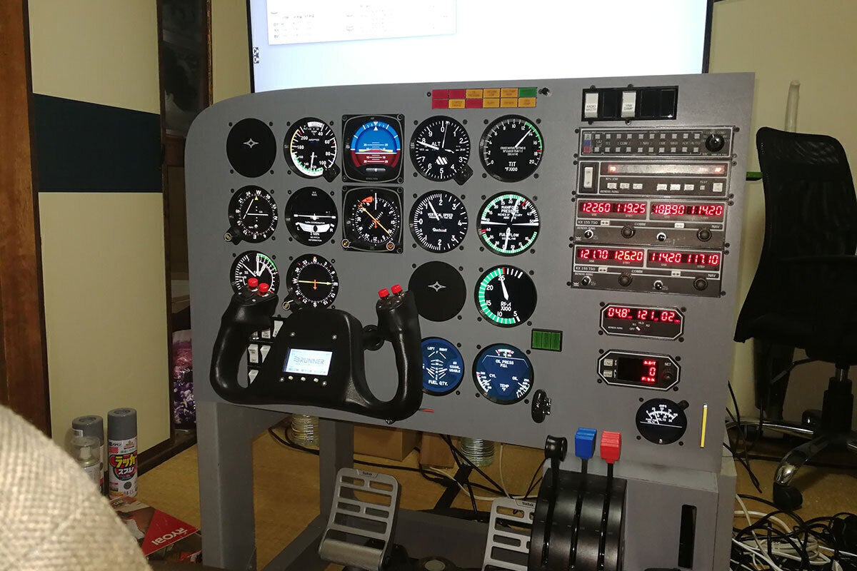 現在製作中のコクピットでは国内の小型機で多数を占めるアナログ計器と無線機、DME、トランスポンダ、オートパイロット操作パネルで構成される従来型のコクピットを模擬していますが、新型機で採用されているグラスコクピット(アナログ計器+GNS530/430、G1000)も今後サポートする予定です。