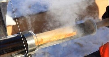 いわゆる魔法瓶の仕様でキャッチした太陽の熱をしっかりキープします。熱が加わる中は高温になりますが、真空の表面は素手でさわっても熱くなく火傷の心配がありません。