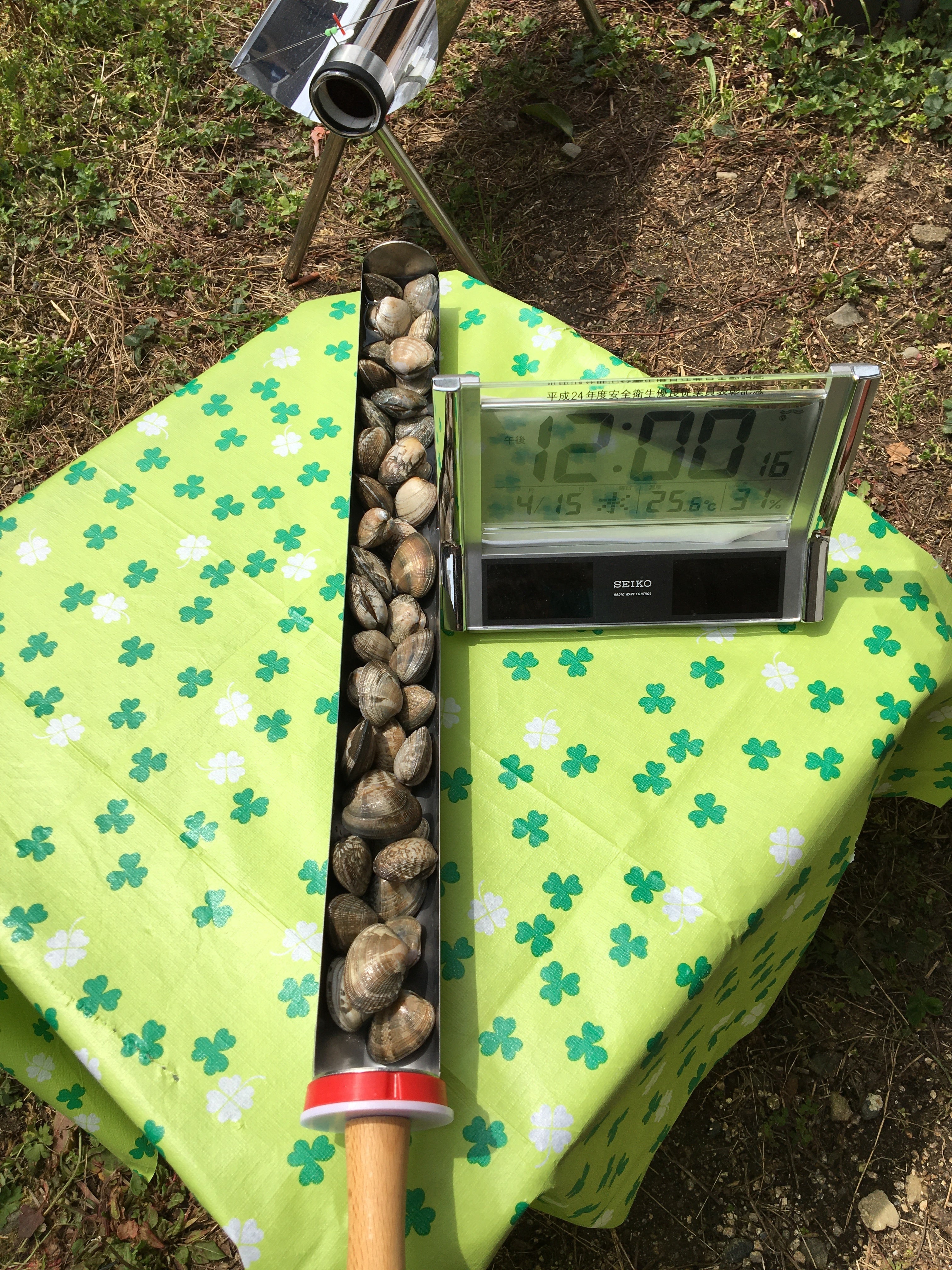 今日は晴れるとのふれこみだったのであさりとスペアリブを昨日買ってきていた。午前中だったら成功していたかもしれないが・・結論から言うと直射日光がものを言う!直射日光がしっかり当たらないと今日の食材の場合は駄目だということがわかった。実証後あさりはあさり汁に、スペアリプは煮てからトースターで焼いておいしくいただいたのでいいのですが、いやーあさりの口が開くのをみたかったなぁ~ということで、またチャレンジします!YouTube→あさりとスペアリブ