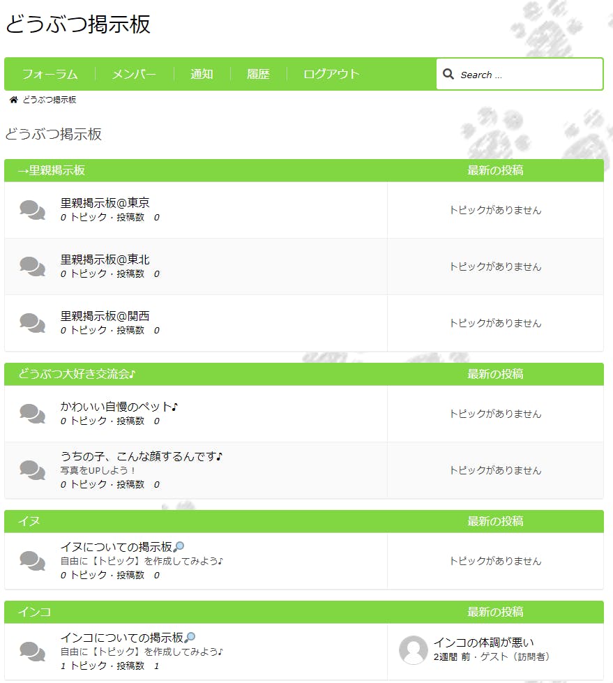 動物の為になる活動には積極的に動いていきたいと思い、サイト内に”里親募集”などの掲示板機能も用意しました。