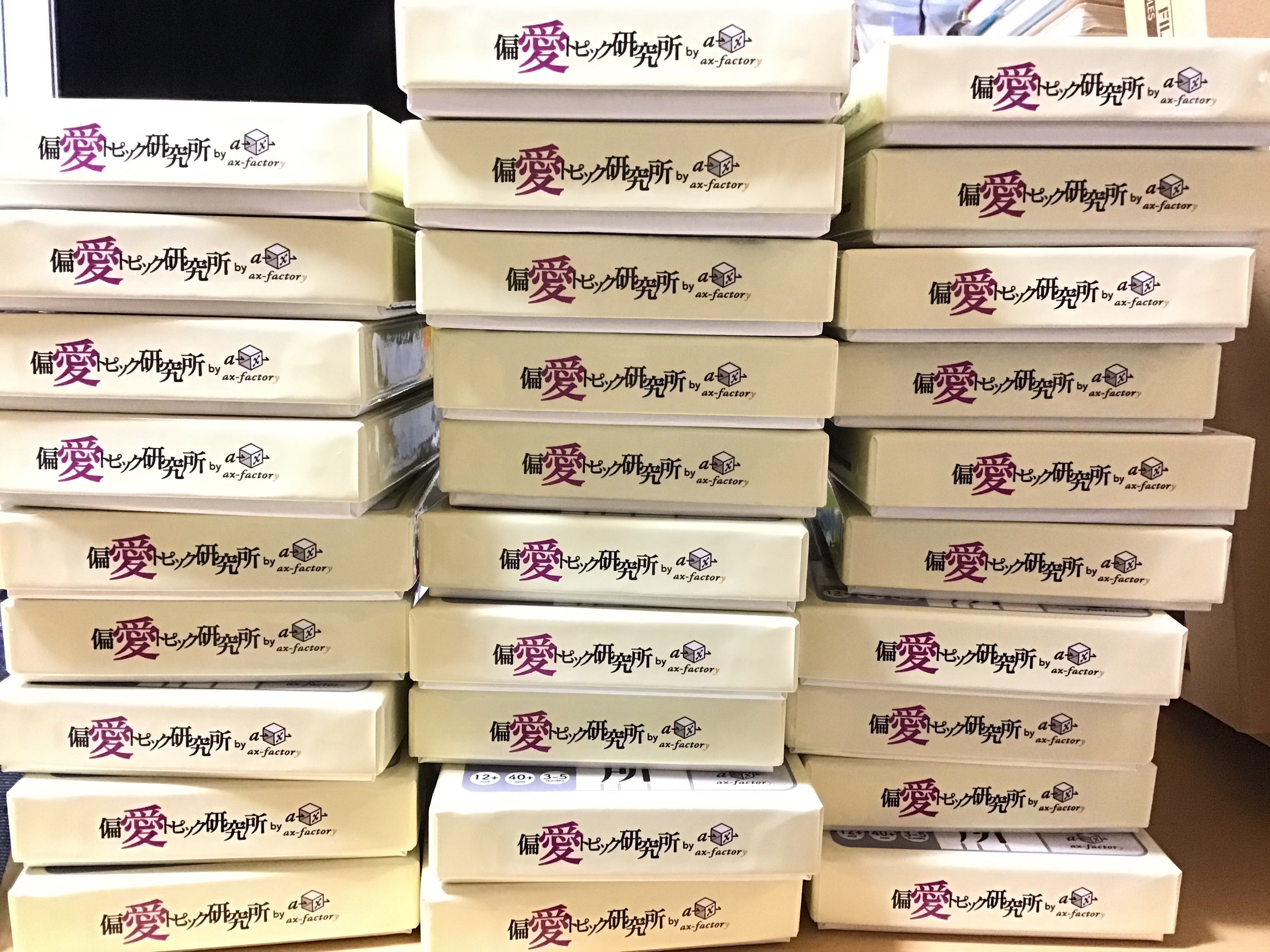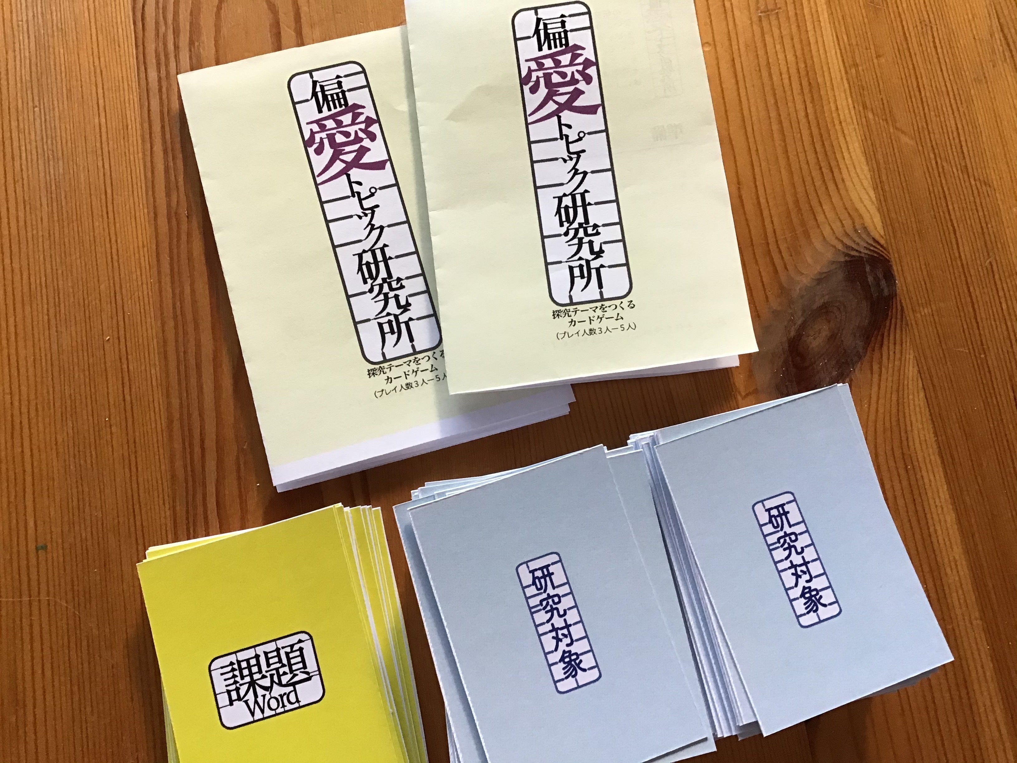2020/06/30 21:48カードゲーム「偏愛トピック研究所」、完成しました。順次発送いたしますので、もうしばらくお待ちいただければと思います。こうして製品として仕上がってきて、あらためて思うこと・・・クラウドファンディングでご支援くださったみなさまには、資金面の支援ということだけでなく、「プロダクトをつくること」へ一歩踏み出す気持ちに、後押しをいただいたように感じています。 (勝手に・・・ですけど。)3月にデザインの大学(通信制)を卒業して、まだまだ本当に力不足で悶絶しながらも、これからも作り続けたい、プロダクトを作りたい、デザインで学びをおもしろくしたい、と思ったところから作り始めたカードゲームでした。完成してみて、やはりこれからも、つくることにはこだわって行きたいと、あらためて思っています。そして、テストプレイにご協力いただいたみなさま。なんだかんだで、いろんな方にご協力いただき、いろんなご意見をいただくことができました。プロトタイプがどんどんブラッシュアップされて、「ねらいに合わせていろんな使い方ができる」というカードゲームのおもしろさも発見することができました。いただいたご意見をもとに、「アレンジレシピ」のミニパンフレットも生まれ、ご支援くださったみなさまにもお届けできることになりました。ぜひ、使ってやってください。そして新しい使い方も開発してください。最後に。印刷ではカードゲーム専門の萬印堂さんにお世話になりました。こんなにカード点数の多いものたちを、丁寧に仕上げてくださって、ありがとうございました。手作りのプロトタイプと違って、箱もカードも、ちょっとピカピカです。あらためまして、みなさん、本当にありがとうございました。これからもつくり続けます。 もっと見る体験会やってみましたレポート