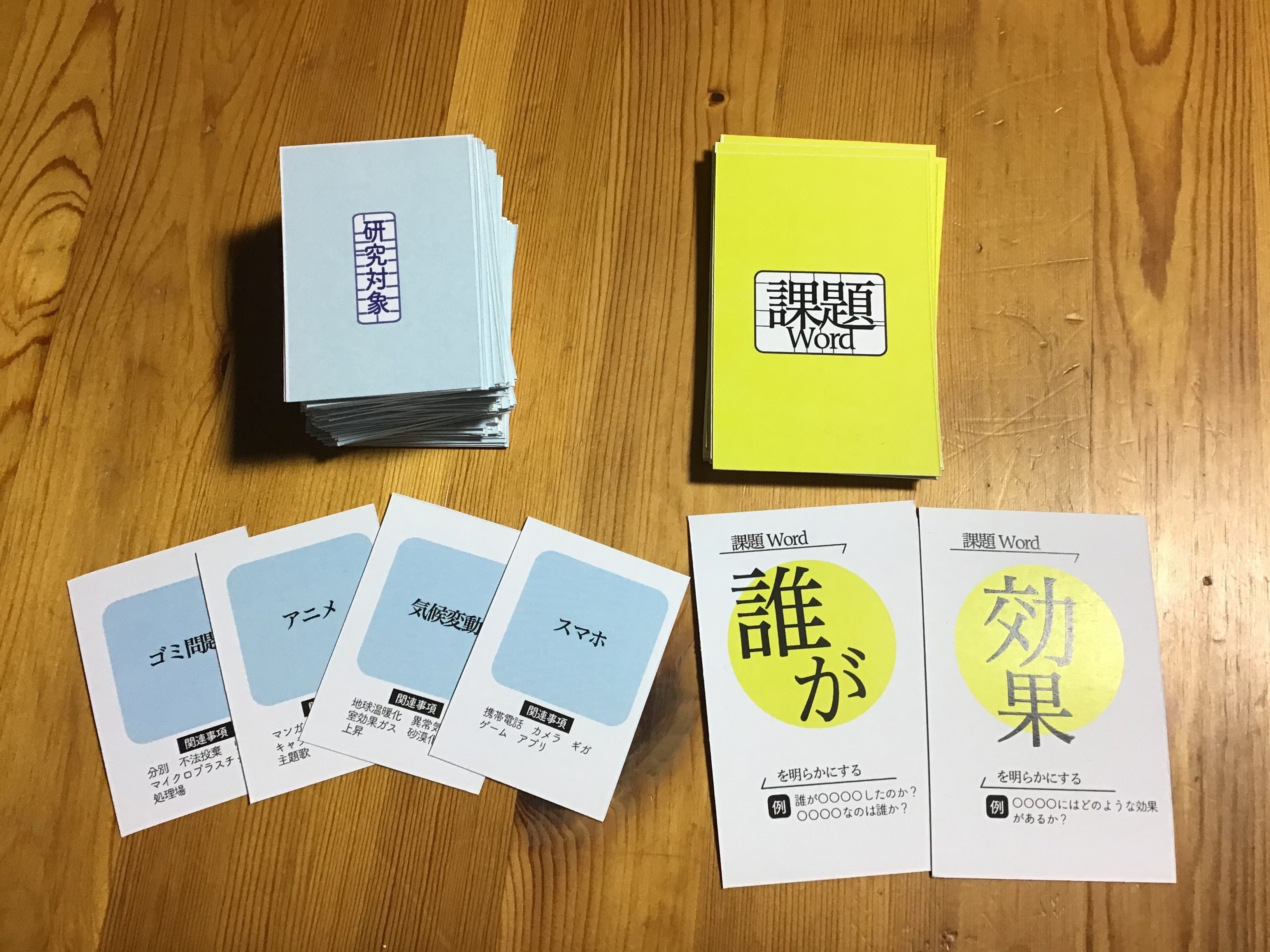 2種類のカードを組み合わせて、研究すべき「テーマ」を提案しあいますが、