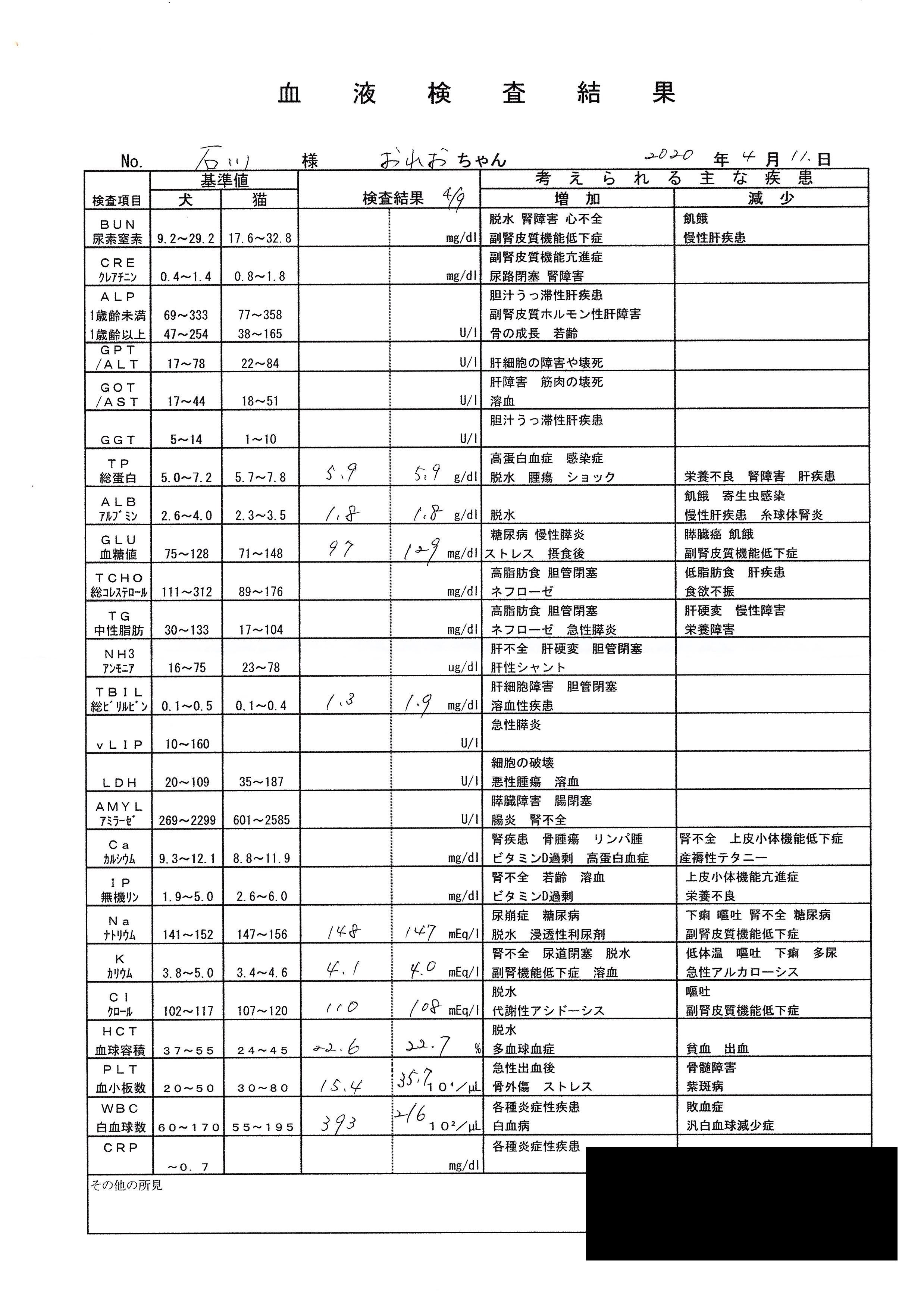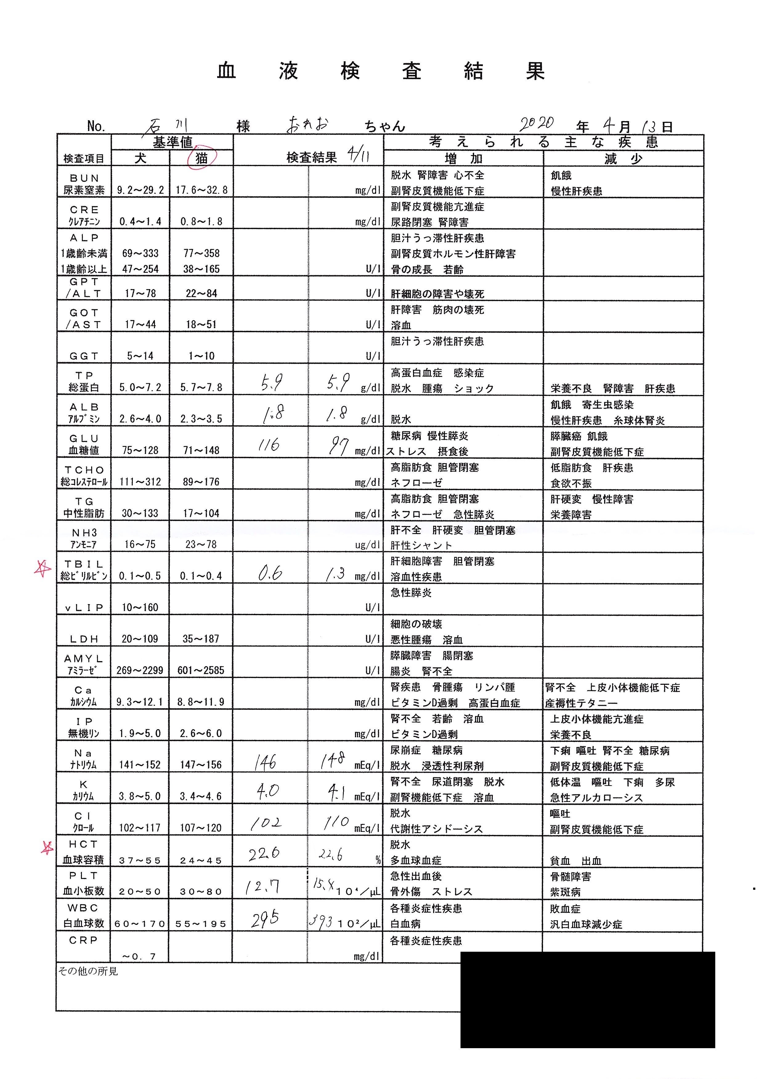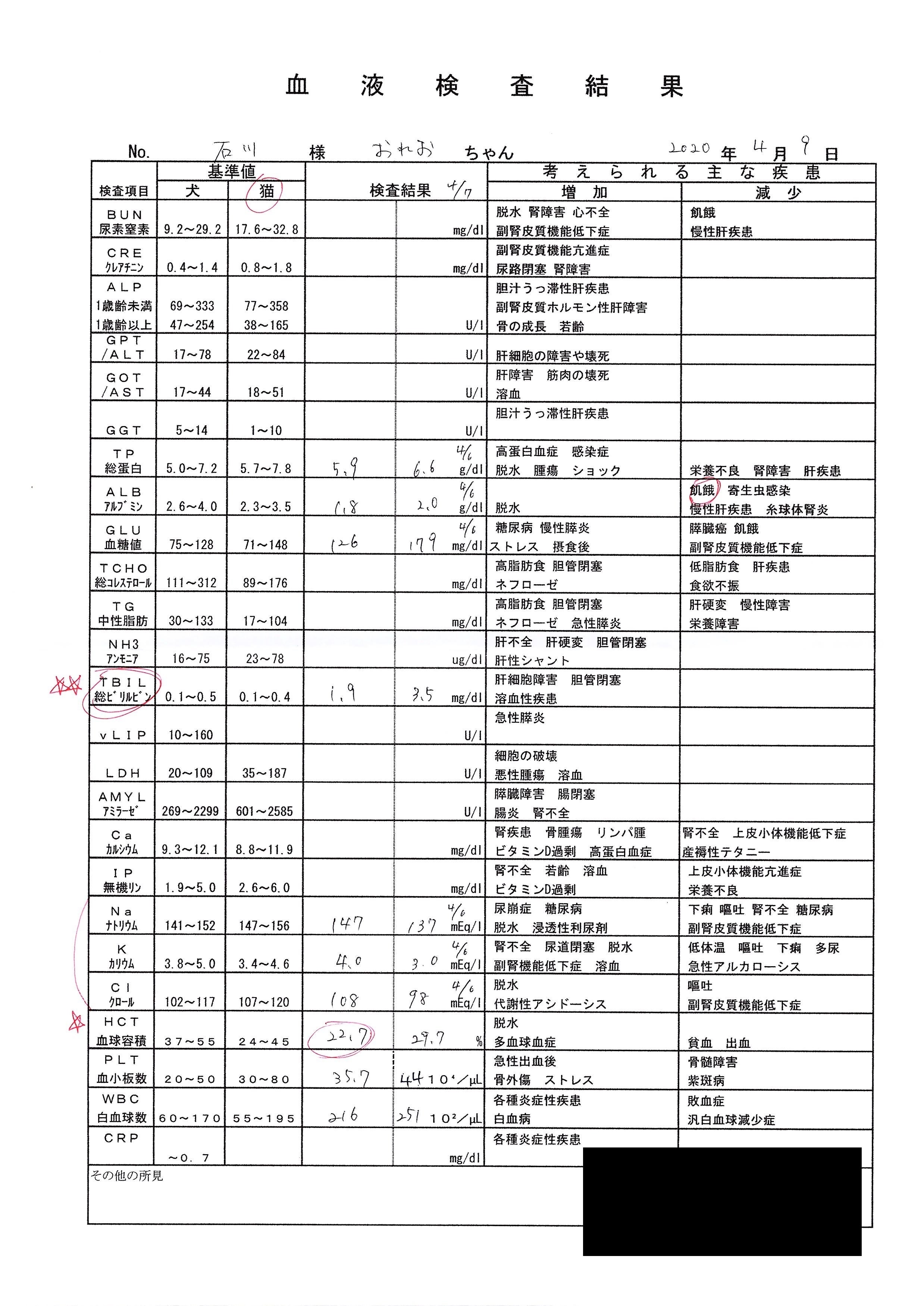 採血データとしてはまず、貧血の数値は前回と変わらずまったく一緒でした。