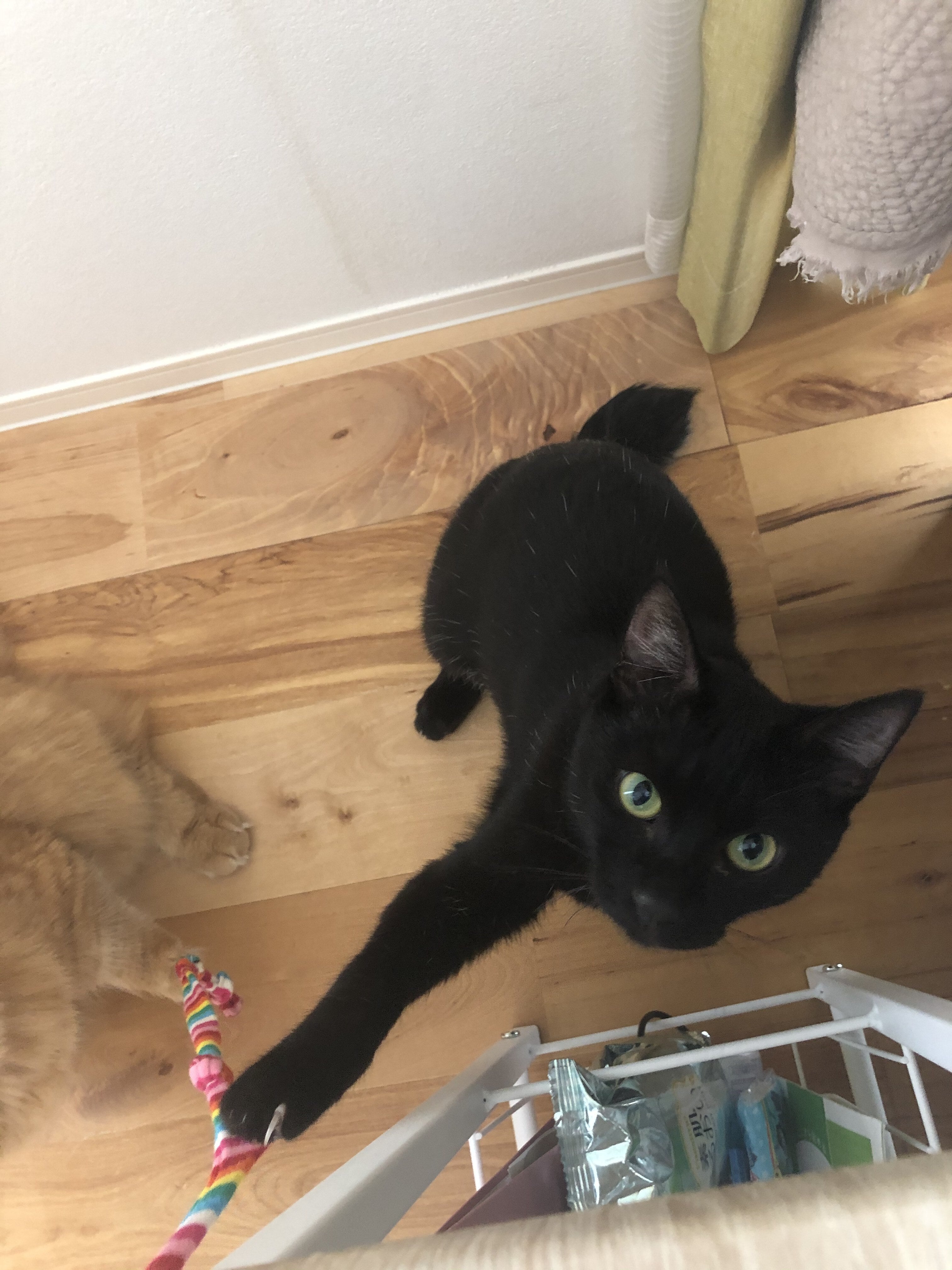 先住猫とともにおもちゃでよく遊んでいます。