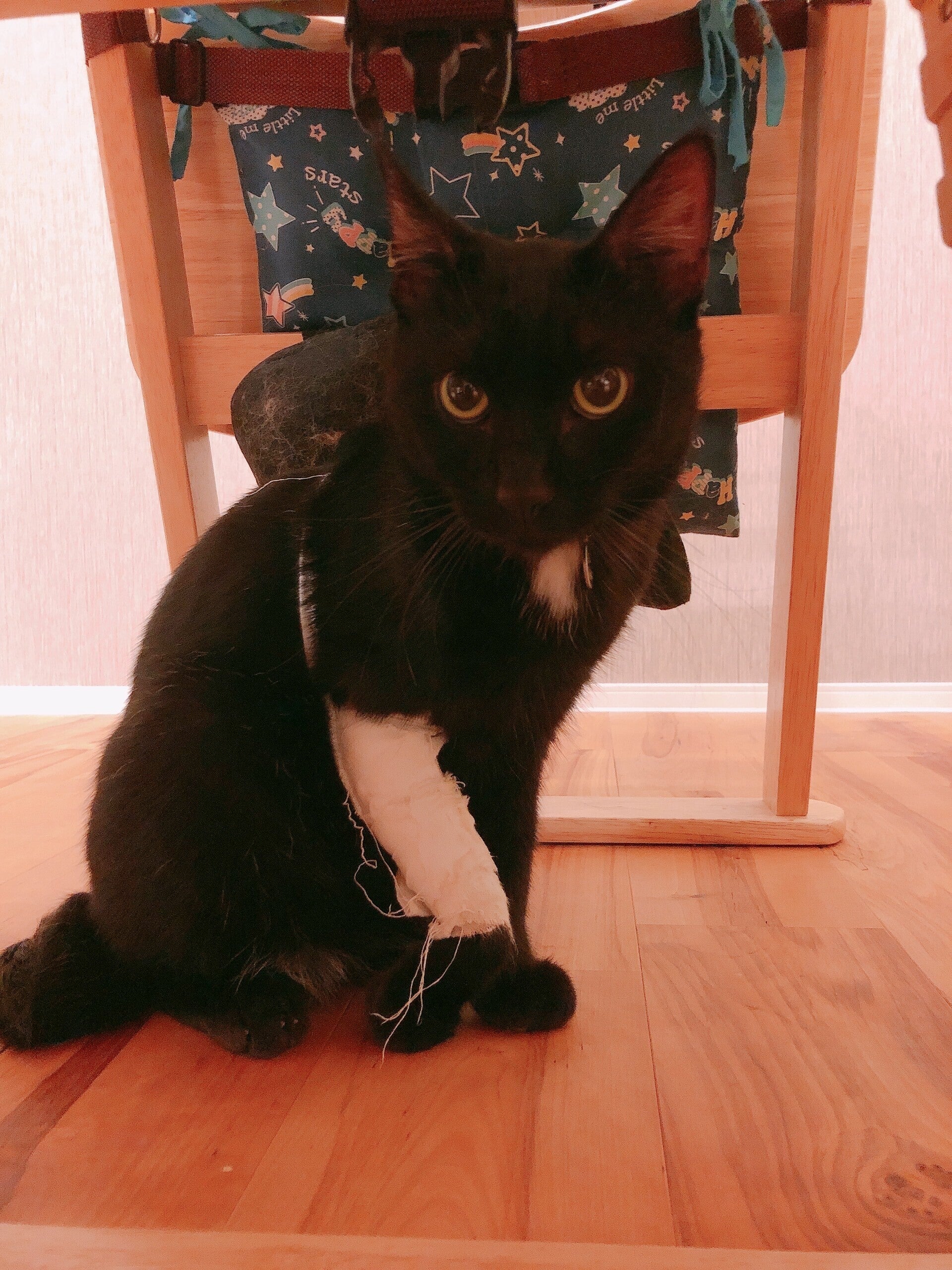 右腕の傷があり、テーピングを背中にかけて行っているため動きづらく、活動量は減っていますが、ウイルスが体の中で悪さをしていることはないようなので一安心です。