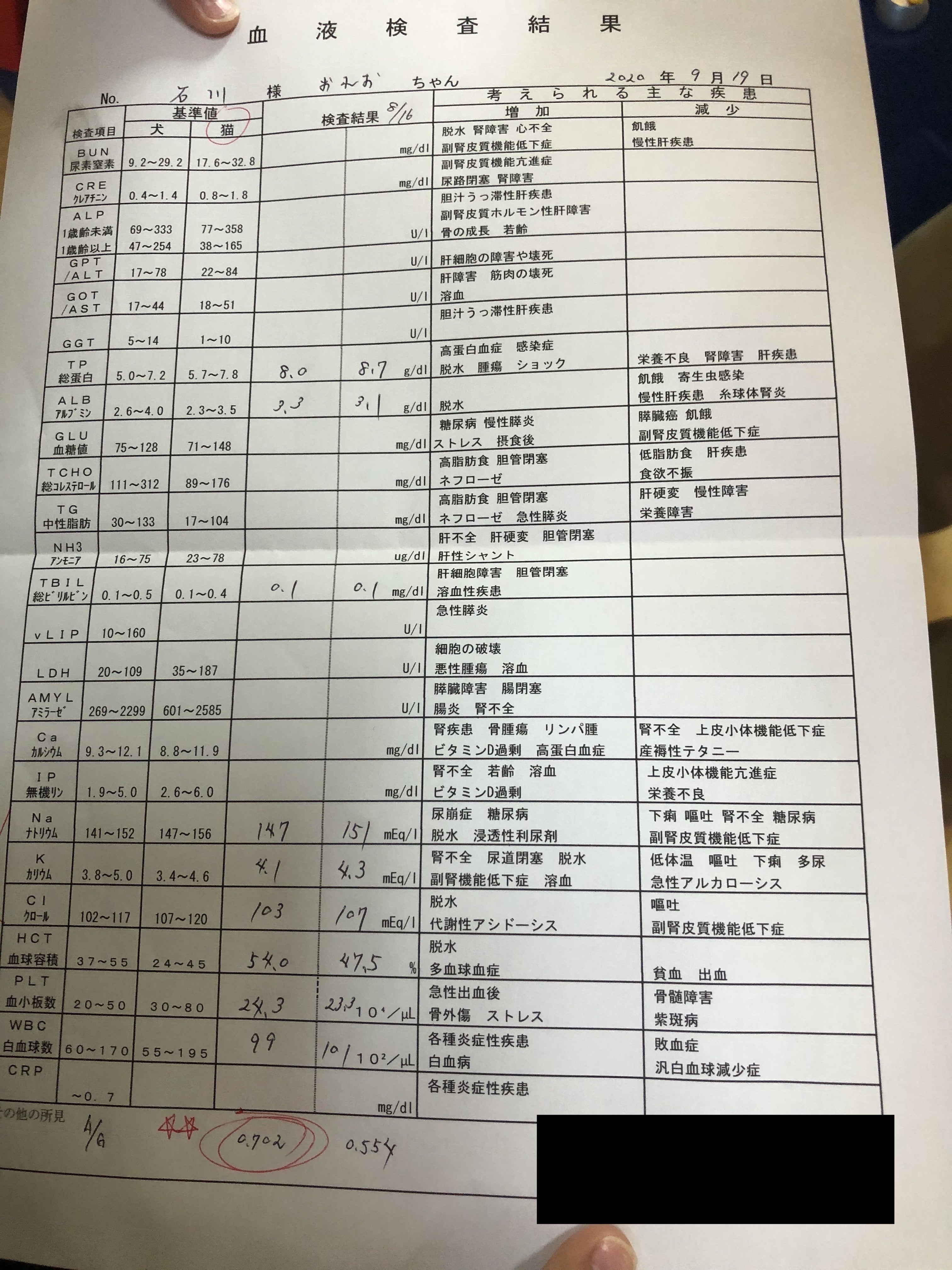 最も経過を確認されていた「A/G比」も今までで最も良い数値でした。
