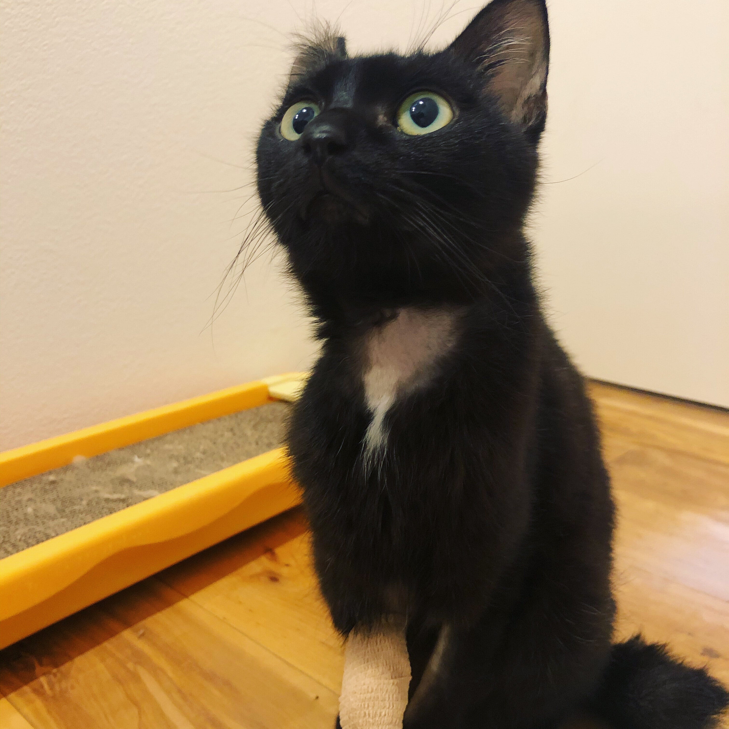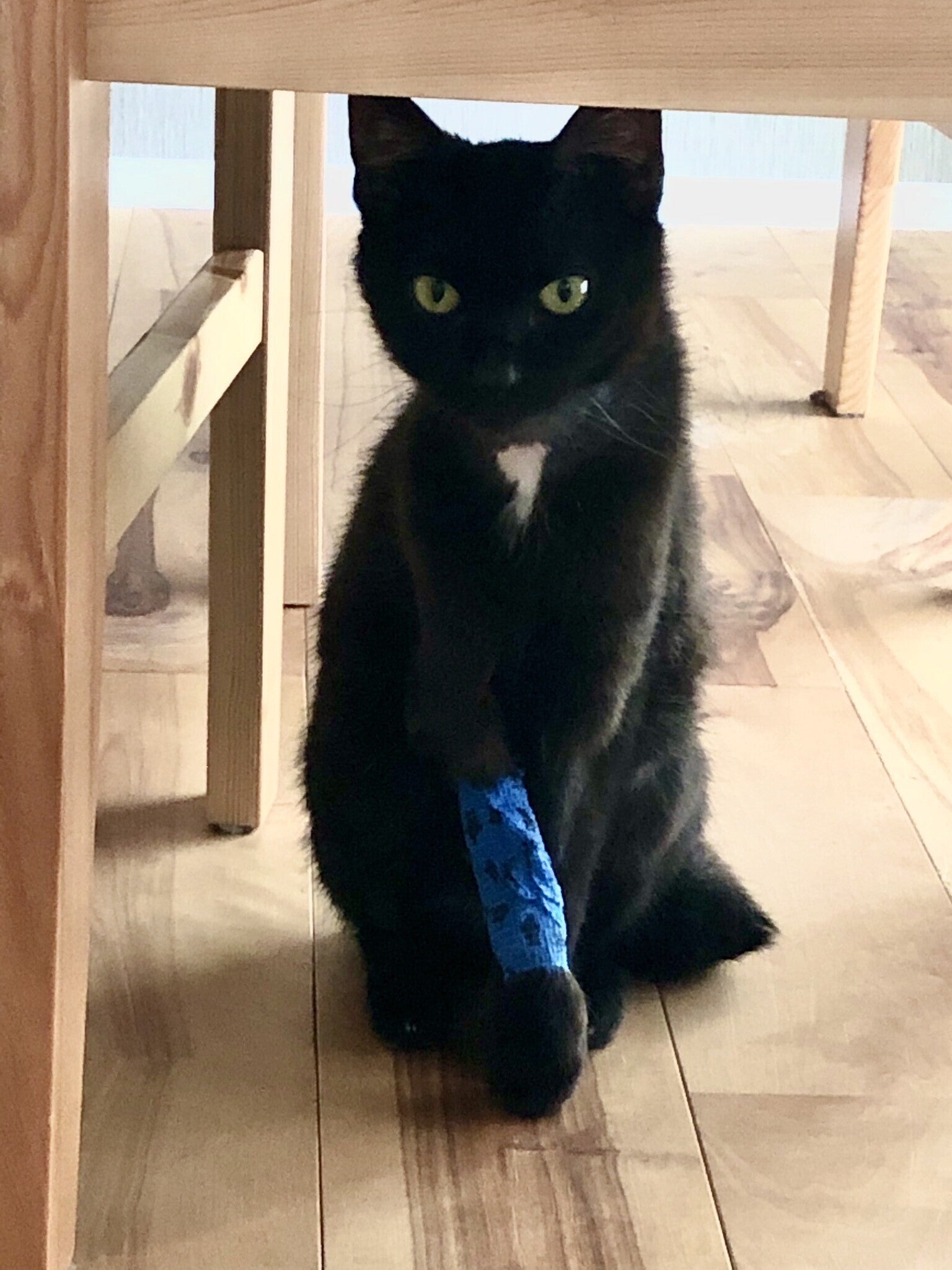 みなさんこんばんは。受診は今月末ですが、本日は前回投稿後のおれおの様子についてお伝えしようと思います(^^)まず、おれおは元気!自動で動くおもちゃに飛び掛かり、スライディングするほどです。私たちが作ったジョイントマットの箱も破壊する有様…。みるみる元気になり、FIP発症前と同じ生活を送ることができています!(↑ジョイントマットの箱を破壊したまっくろくろすけ)体重も順調に増加。2.50kg以上で450mg、2.75kg以上で500mgと協力病院から指示を受けていたのですが…本日(5月20日)、2.77kgへ……。体重が増えるのは嬉しい!!!!だけど、しかし…お薬代のことを考えると複雑な心境です(;;)でも、ひとまず体重が順調に増えるほど元気になってよかった!前回診療時に右腕の内側に傷があったのは問題ないと言われましたがその後、右上の内側、外側にまた新しい傷が。どちらも悪化はせず、塗り薬だけで治癒していっています(^^)点滴時に毛をそっているため、自分の歯が引っ掛かったのか(内側はおそらくそう)他の猫ちゃんとじゃれる(喧嘩する)ようにもなったので、その時にひっかけたりしたのか…原因は謎です。だがしかし、おれおは強い。体格は一番小さいのですが、他の猫ちゃん(2匹)に負けずとびかかっています。1匹は大型猫なのに、その子にも容赦なく体当たり。すごいな……。そんな元気で負けん気が強いおれおだからこそ、ショック状態から回復してくれたのかもしれませんね(;;)クラウドファンディングは、残り8日となりました。今手元にあるMUTIANでは足りないため、また追加処方を受けなければなりません。もともとの想定より大きく費用が上回ってしまいました…;コロナの影響もあり、頭を悩ませますね…これまでに、たくさんのご支援・ご協力ありがとうございます。現在目標達成率は50%です。皆様のお力のおかげで、ここまでこれました!大変ご迷惑、ご心配をおかけしますがもう少しだけ皆様のお力をお貸しください(;;)おれお!みんな応援してくれてるよ!一緒に頑張ろうね!