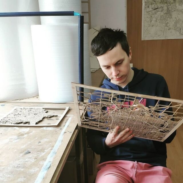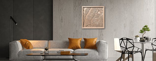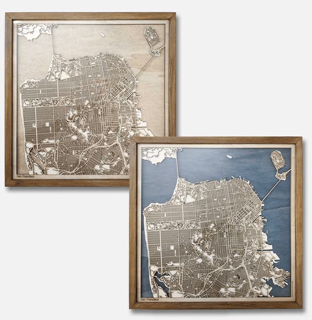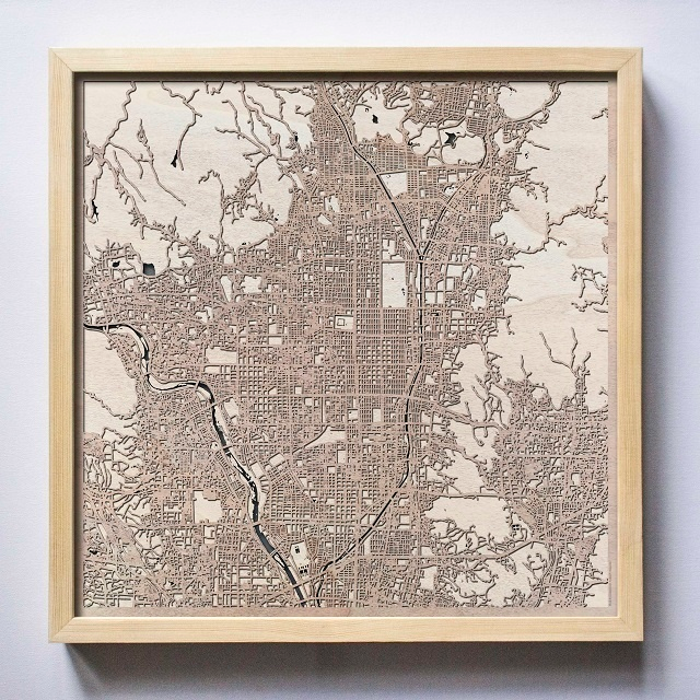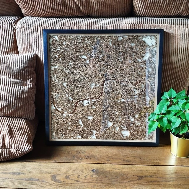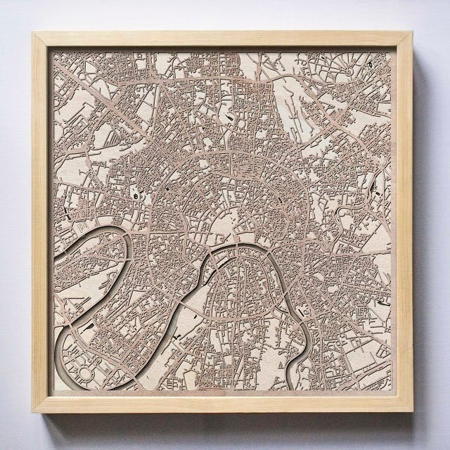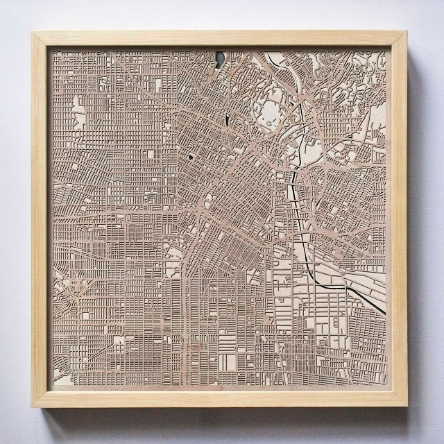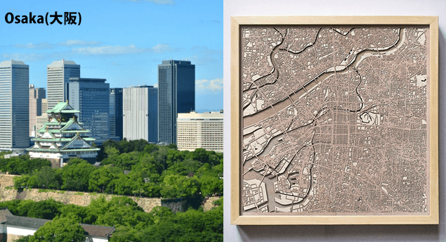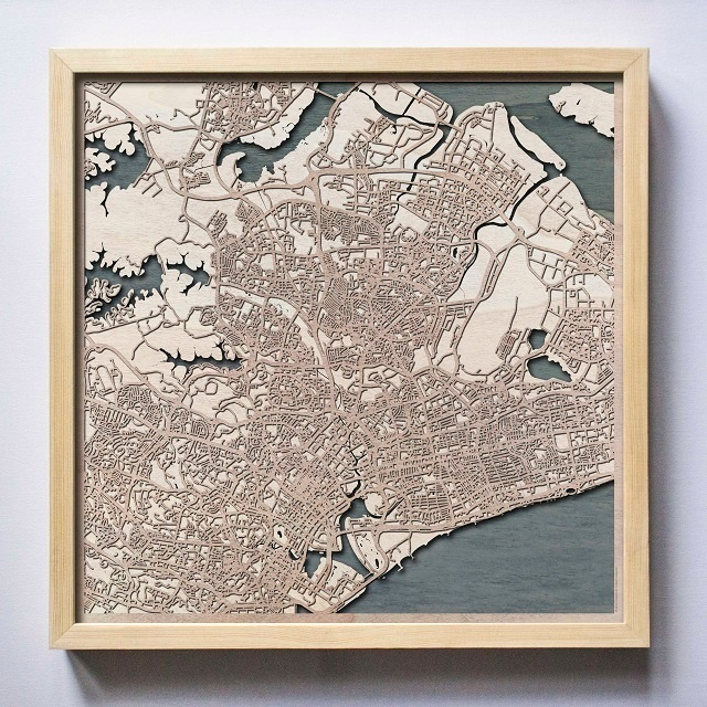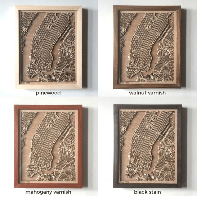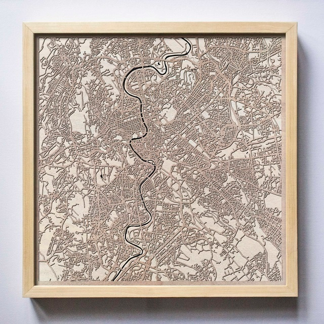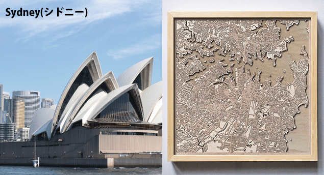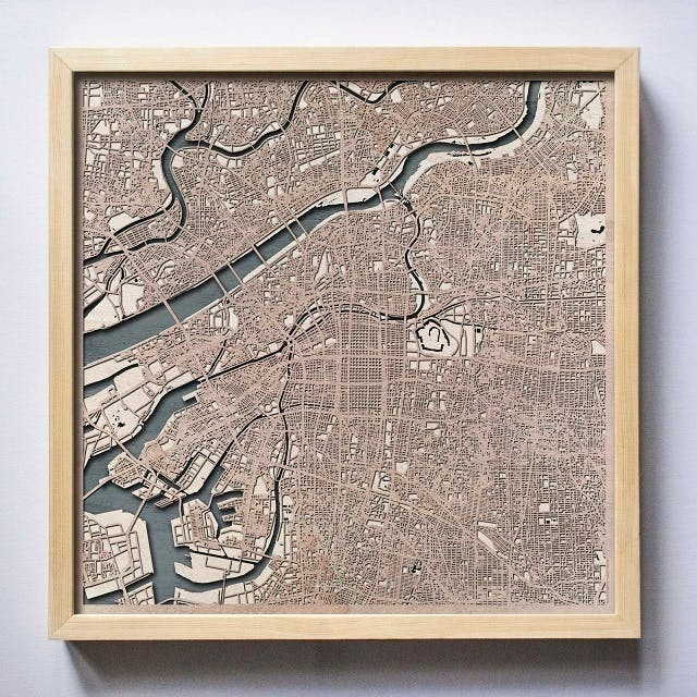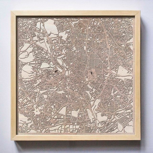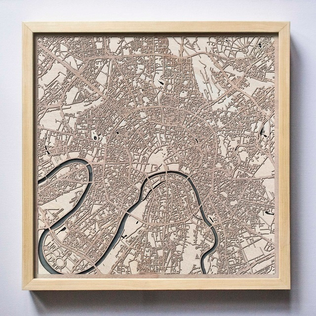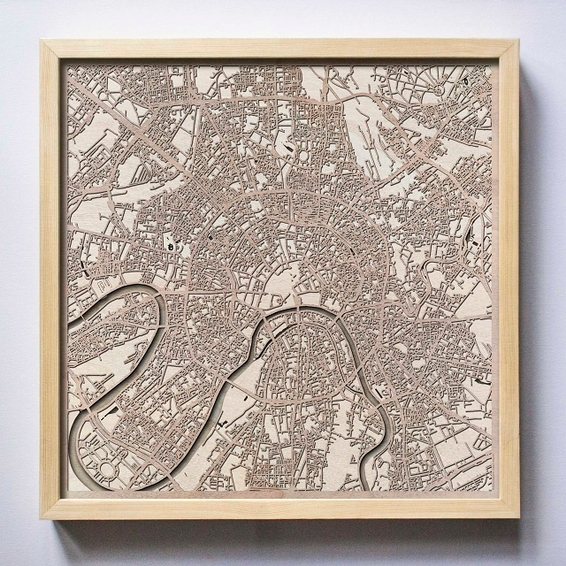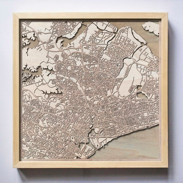 世界の大都市をレーザーカットで精巧に表現した3D木製地図。