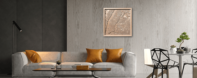 サイズ(4種)、フレームの色(4色)、水の色(2色)も選べる、あなただけのオーダーメイド地図。
