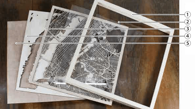 最後に、各レイヤー、プレキシガラス、木製フレームを組み合わせて完成します。
