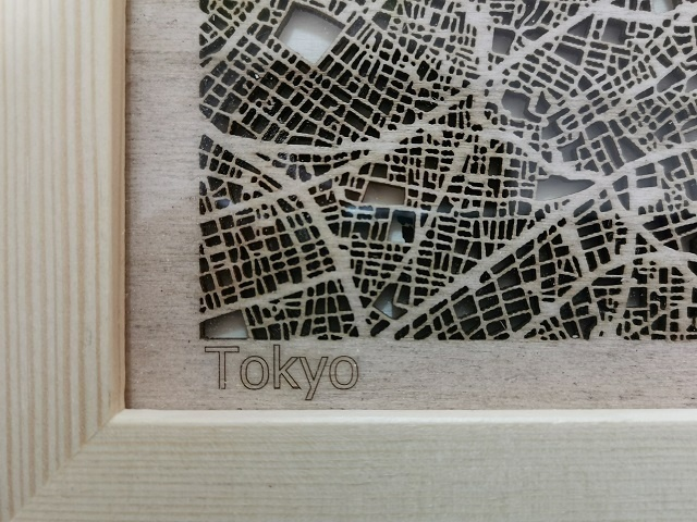 レーザーカットにより、ストリートレイヤー(道路)、ウォーターレイヤー(河川・海)が完成。