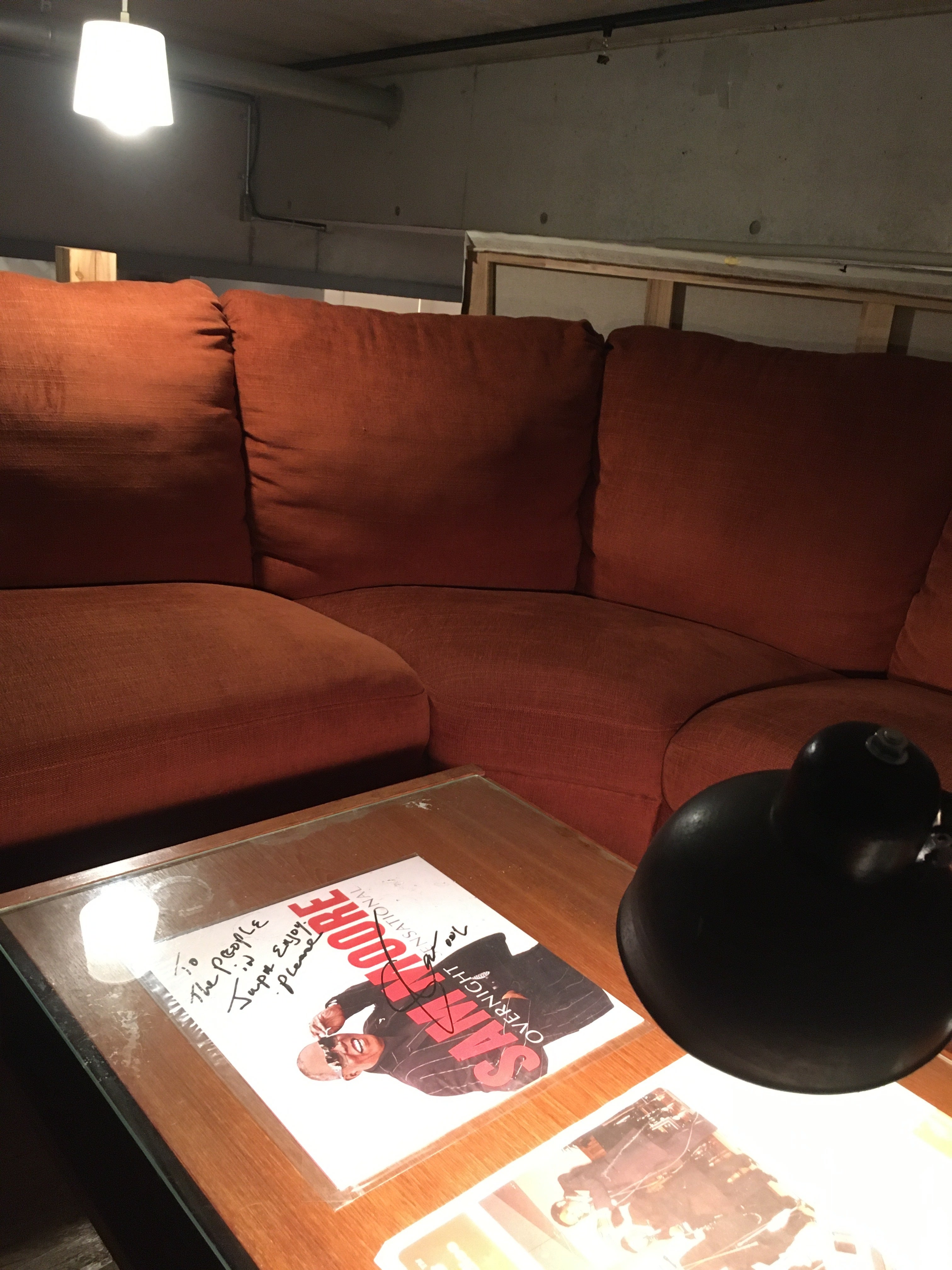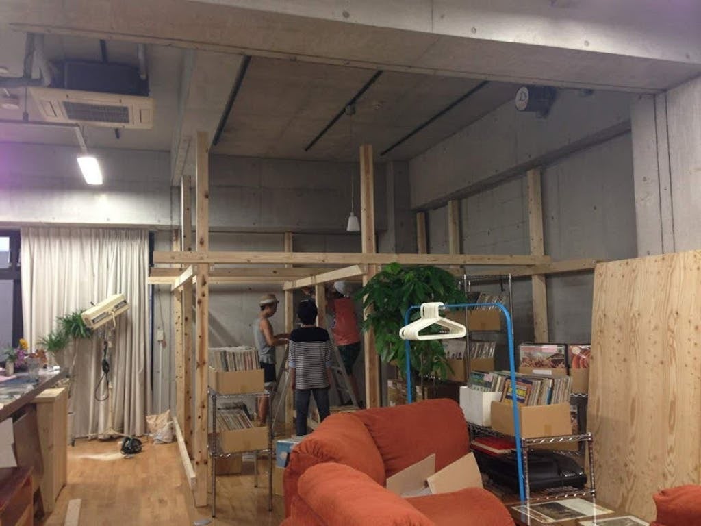 リブラボの楽屋はせっかく天井が高いので倉庫の上にロフトを作って楽屋にしようということになりました。いわゆる「高床式倉庫の上の楽屋」なんです。でもやや上に登ると天井が結構すぐそばで、背の大きい人は着替えるの大変だと思います。それと壁を作ってないのでお客さんの話は丸聞こえ、アーティストは楽屋で発声練習や準備体操なんかもし辛いような環境かもしれません。でも大きなソファーがあって居心地がいいので、誰もいない日はそこにPC持ち込んで仕事したり、僕も大好きな場所です。