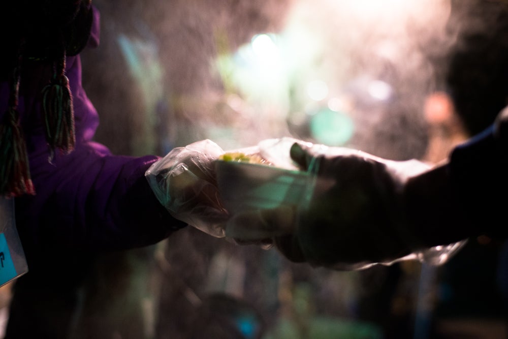 協同団体によるお弁当配食の様子。ここ数週間だけで相談に来られる方が増加しています