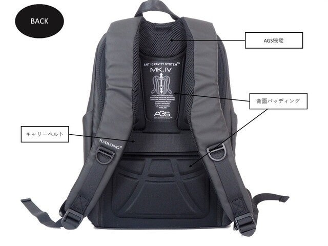 JUXILONG(ジューシーロン)のリュックには、AGSという特許技術が搭載されています。
