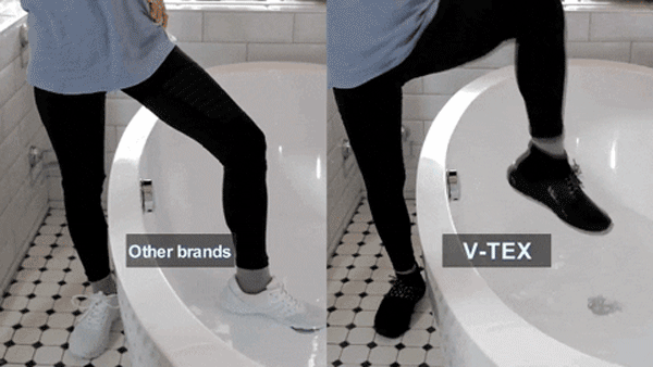 従来の防水靴とは異なり、V-TEXの重量はわずかです。