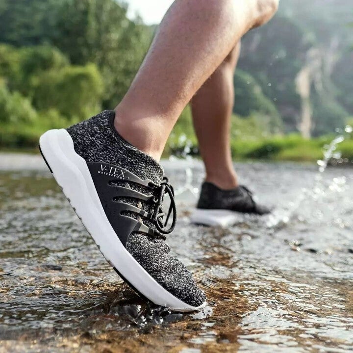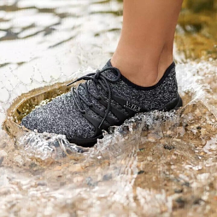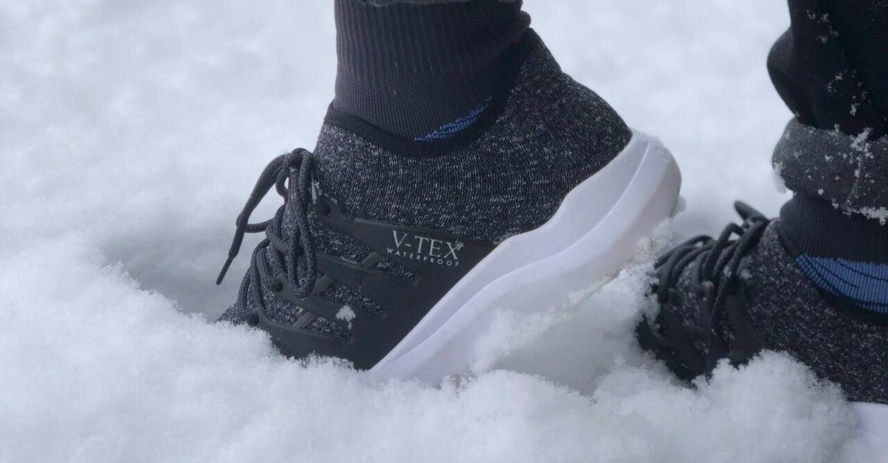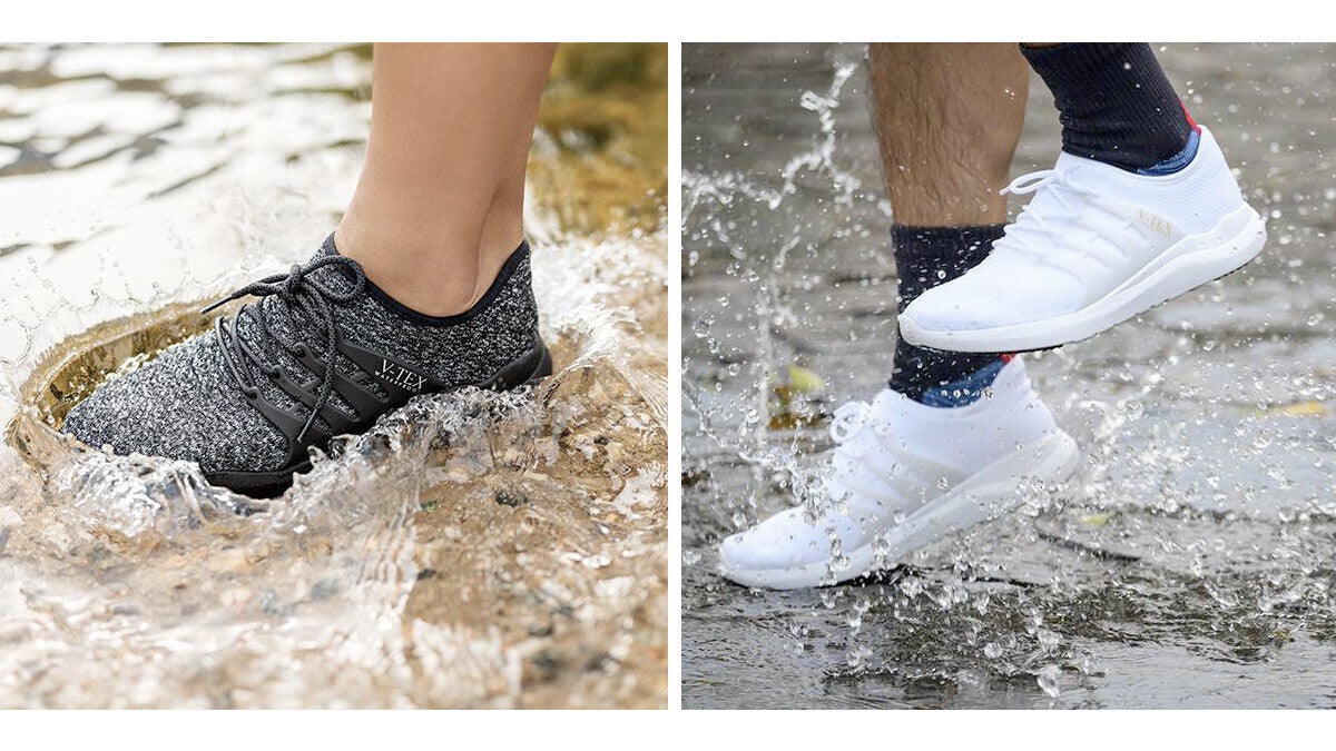 レインブーツの機能と最もリラックスできるサンダルの快適さを備えたV-TEXは、雨の日もアウトドアも、季節を問わず一年中履ける防水ニットシューズ。