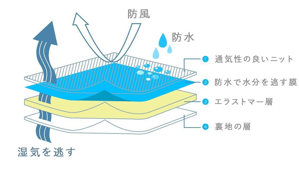 特許取得技術を使った素材で、通気性は守りながらも高い防水性を実現しました。