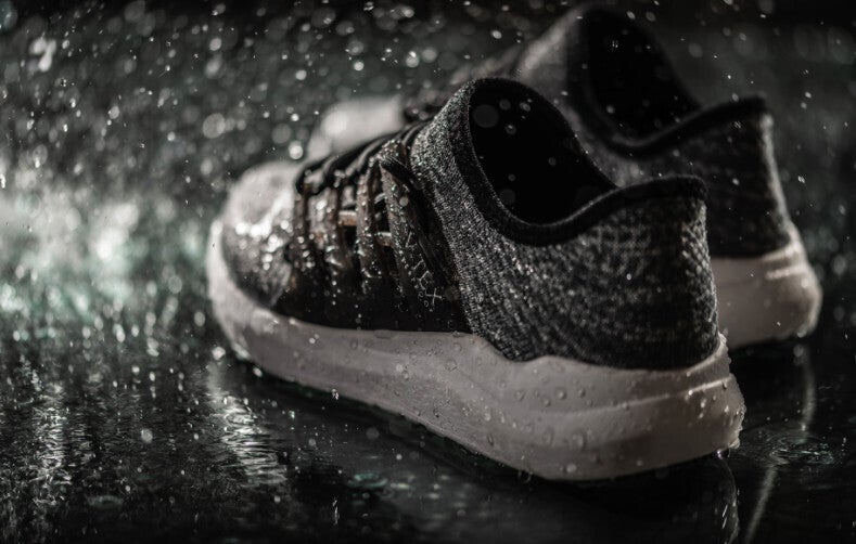 このニットを含む特殊な四層構造は、肌が必要とする空気の微粒子を通す一方、足元を不快にする雨水の微粒子をシャットアウト。梅雨や台風シーズンの水溜まりはもちろん、冬の雪道の上を通った後もスニーカーの中が濡れることはありません。