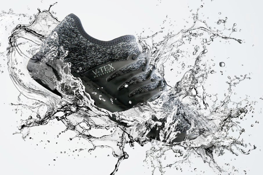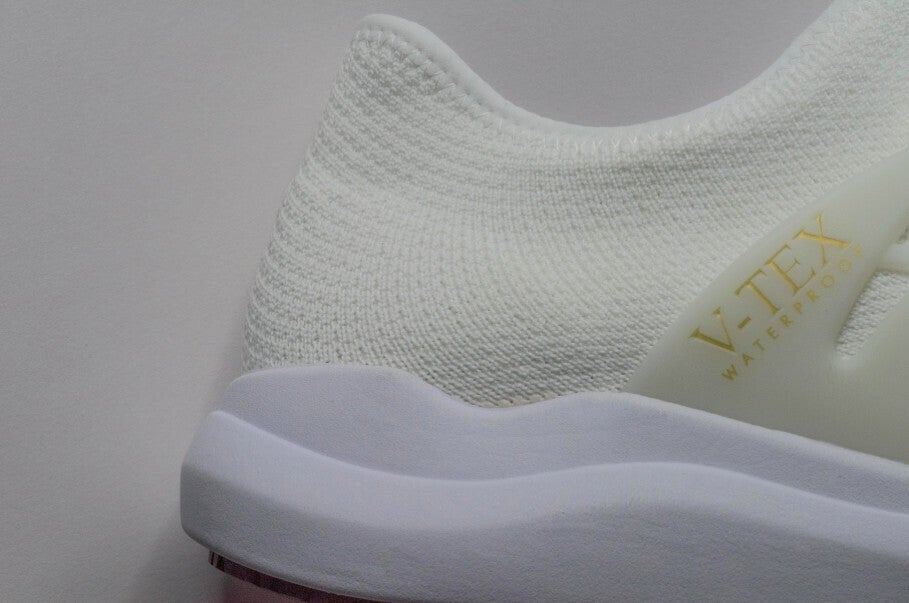 V-TEXの防水耐久性に関して、ニットの表面が鋭利な物体によってメンブレンの内側まで破損しない限り、靴の寿命まで防水性は持続します。