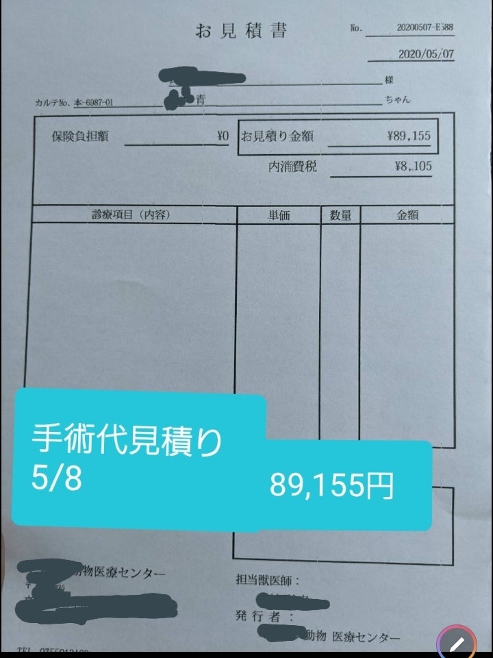 ⚫青ちゃんの今後の治療費