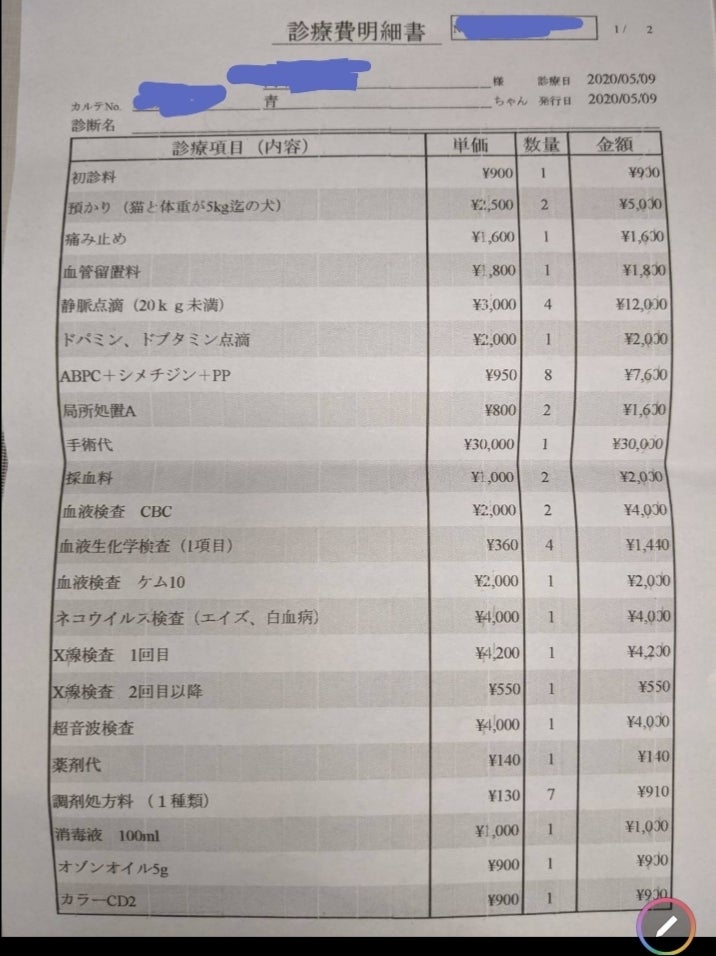 1.青ちゃん治療費総額426,194円