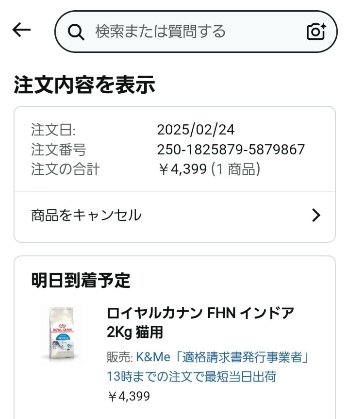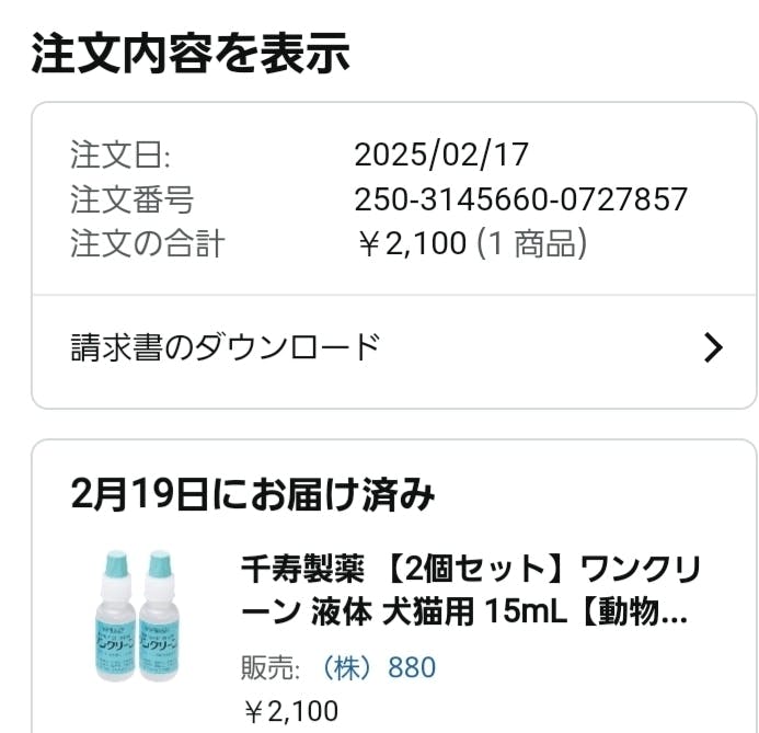 あと、チョコ用に餌と目薬を購入しました。アマゾンで購入しました。