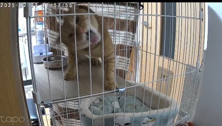 ケージのワイヤーを噛んでみたりワイヤーから手を出して暴れてなんとか脱出出来ないか試みているようです。(^_^;)