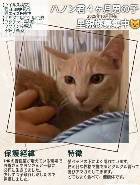 知り合いの方から猫を貰う予定が先方さんの都合でキャンセルになったとの話を聞かされて、女の子を貰う予定だったとお聞きして、