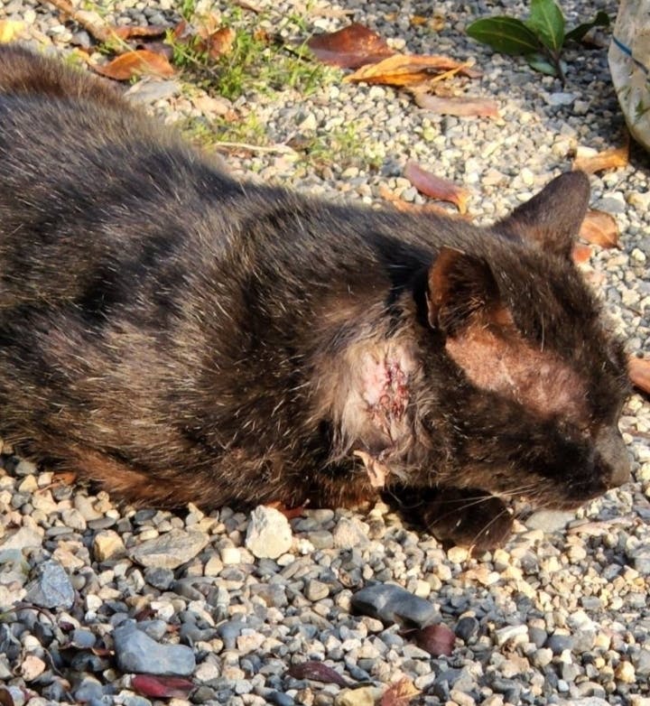 青ちゃんもそうでしたが、何か外敵に噛まれたのでしょう。子猫だったらひとたまりもありませんね。