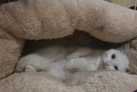 ホワイト・ミミちゃん、この12月になんてぴったりな猫ちゃんでしょう。