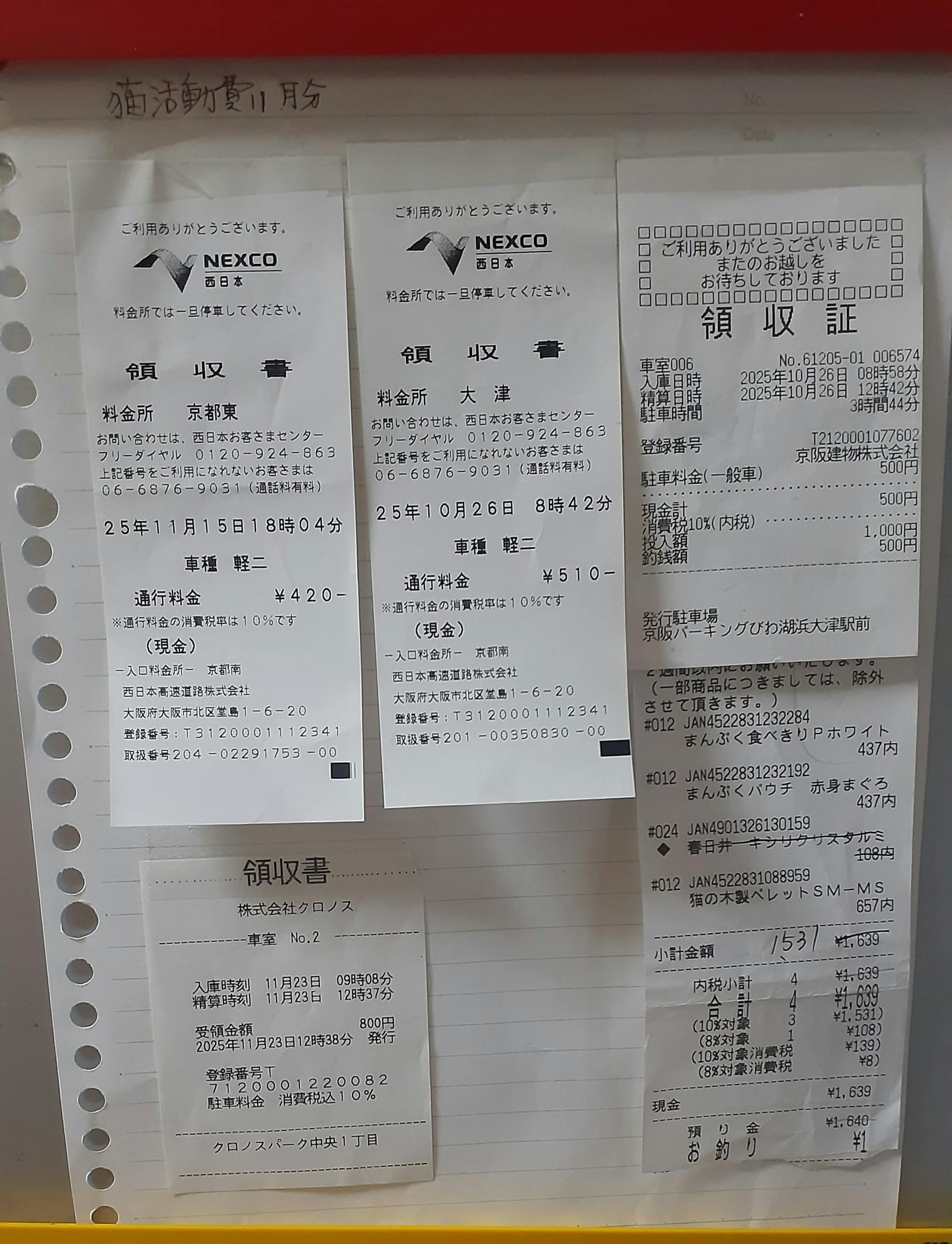 11月1日、10月百町譲渡会時高速代(計上漏れ)510円