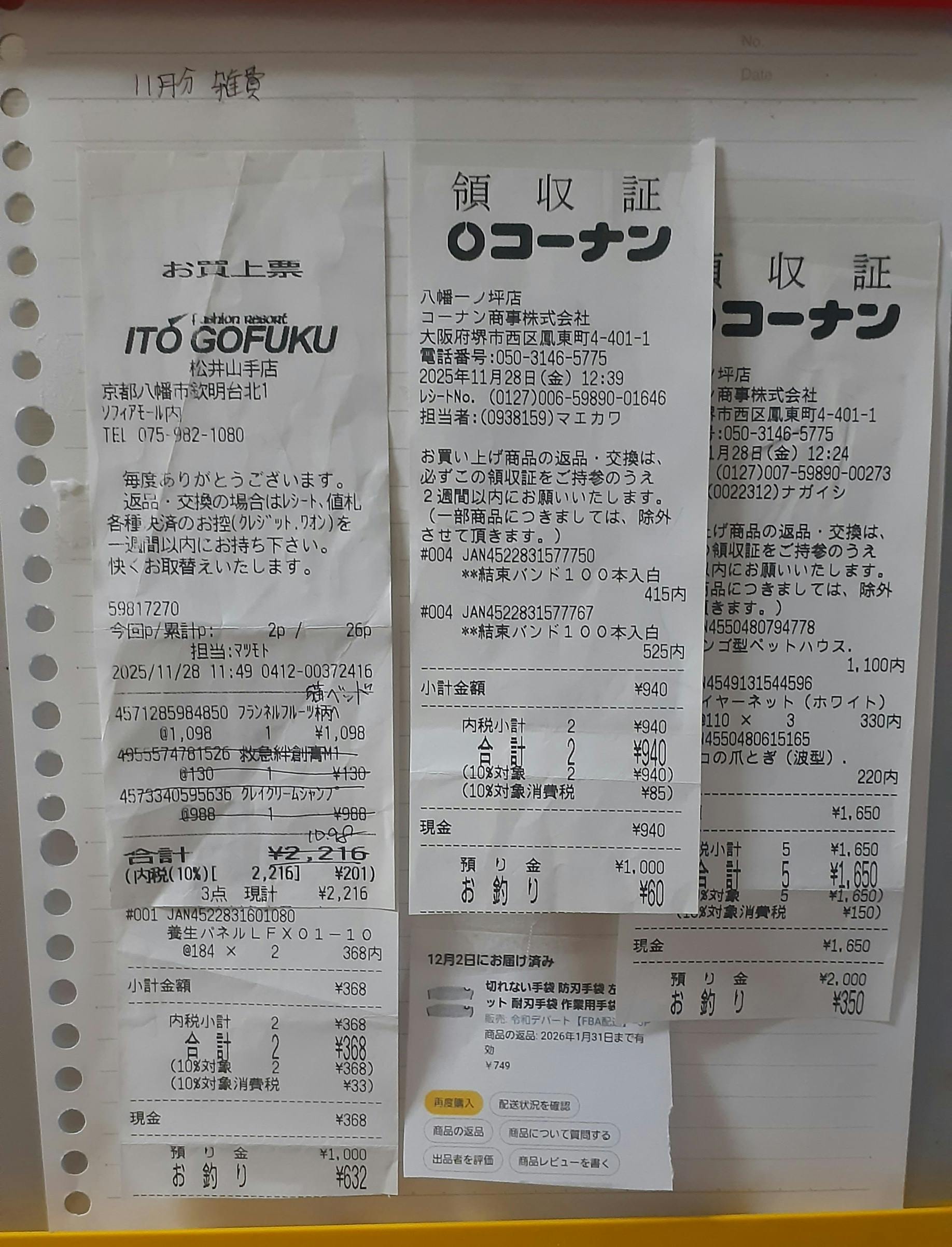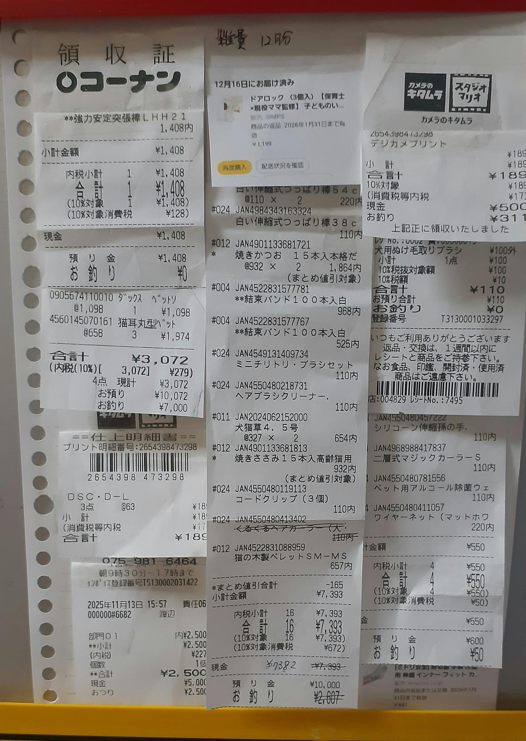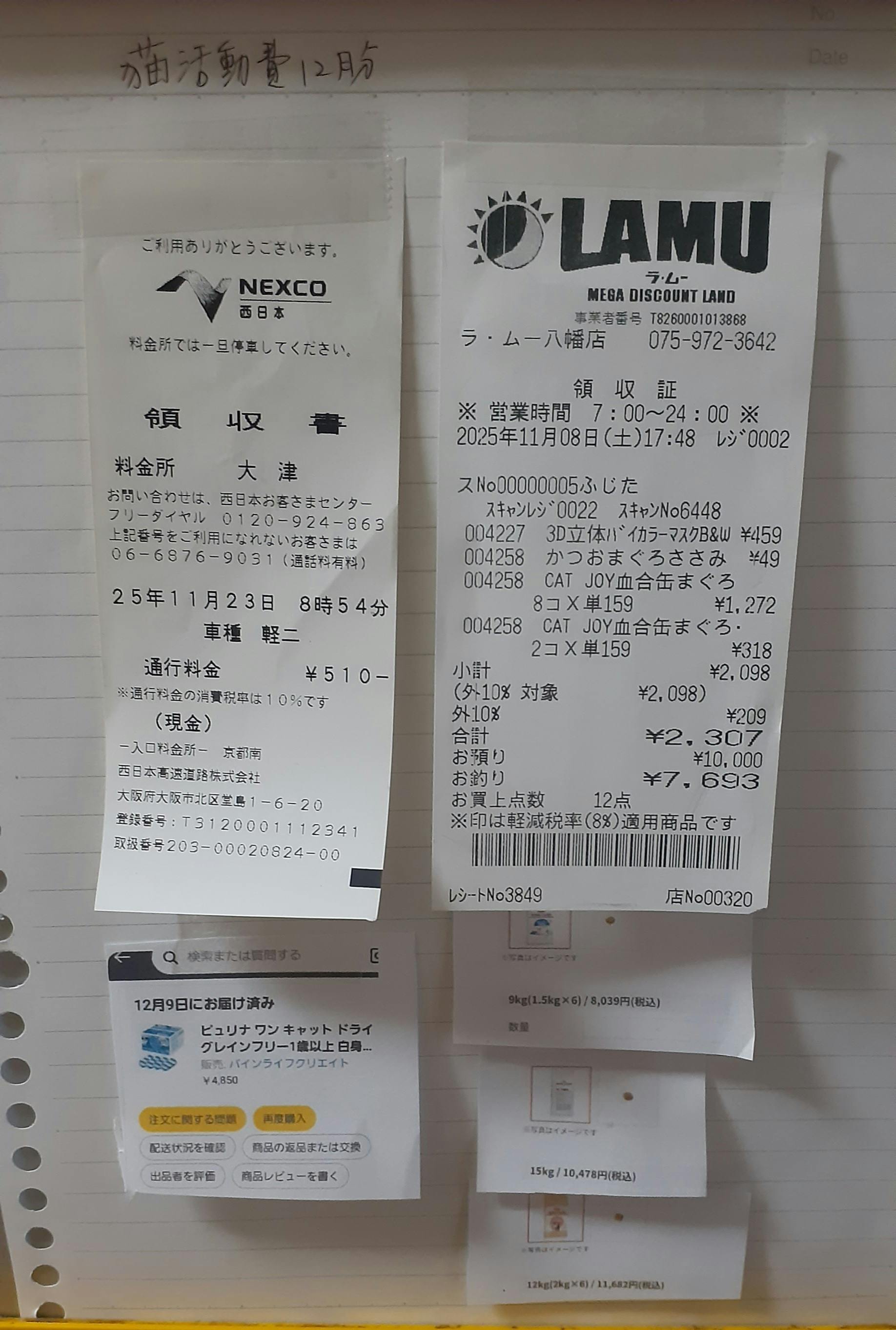 12月1日11月13日猫ベッド代3,072円(計上漏れ)