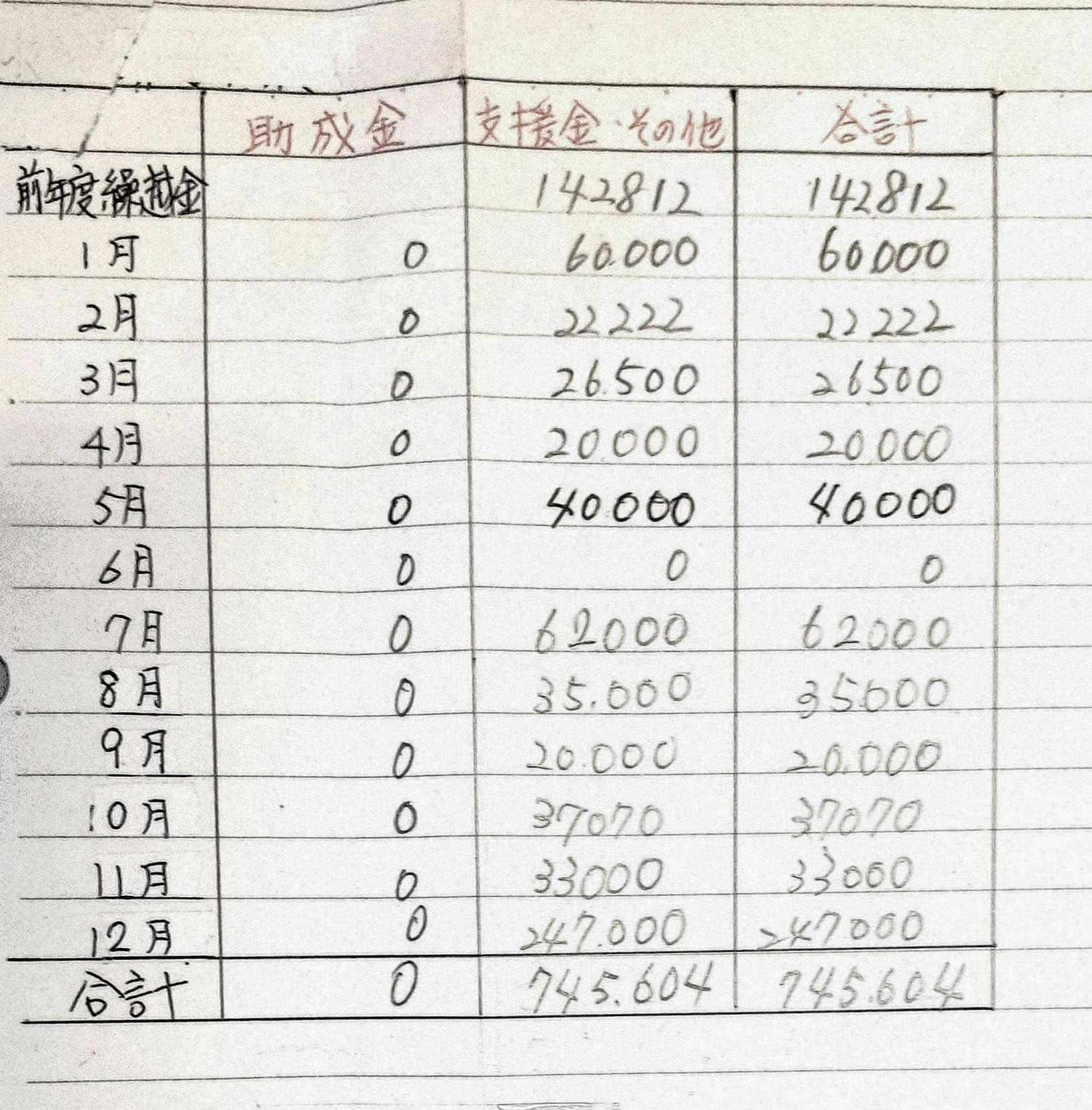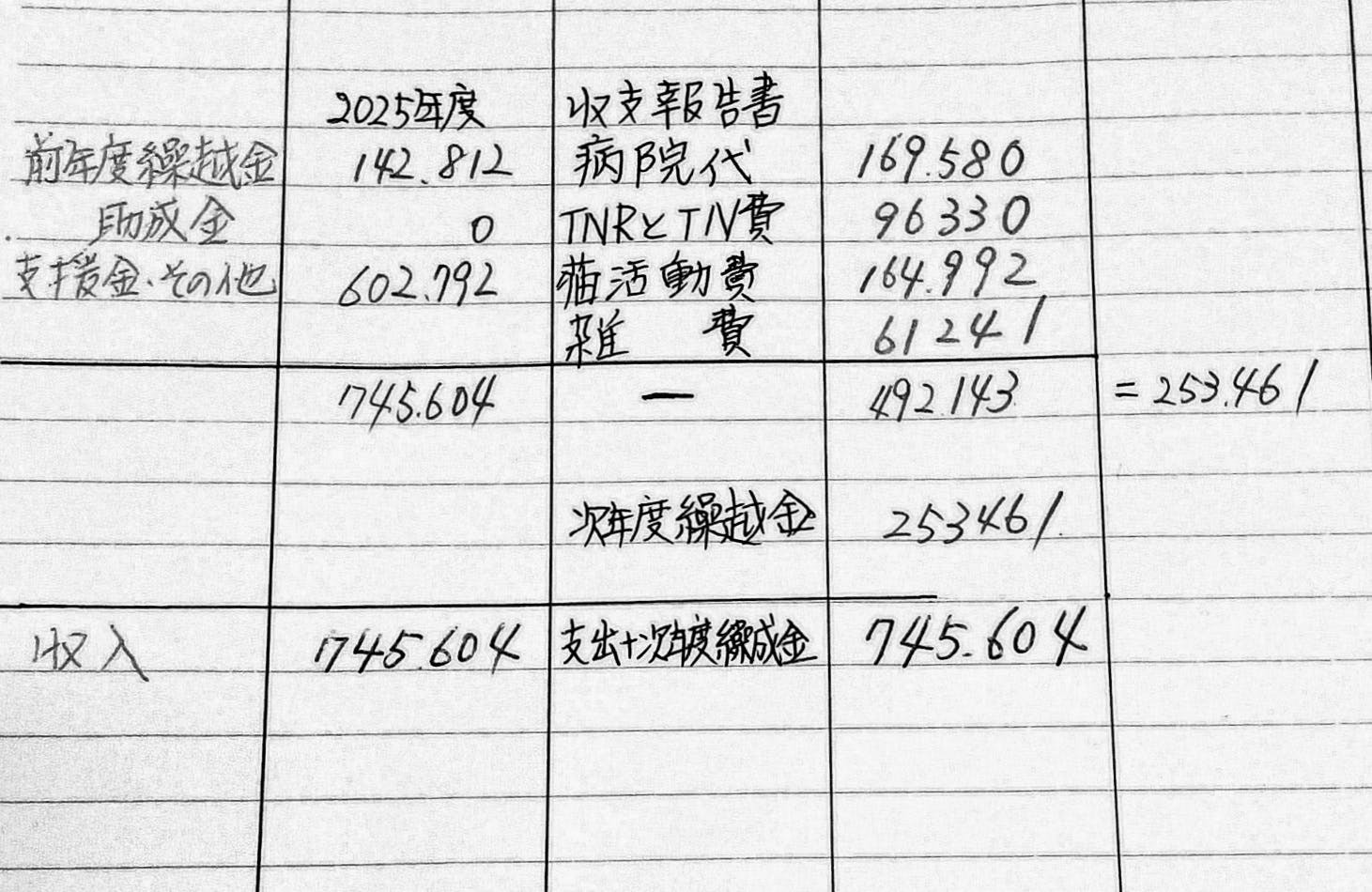 745,604-492,143=253,461円残高(2025年度12月末現在)
