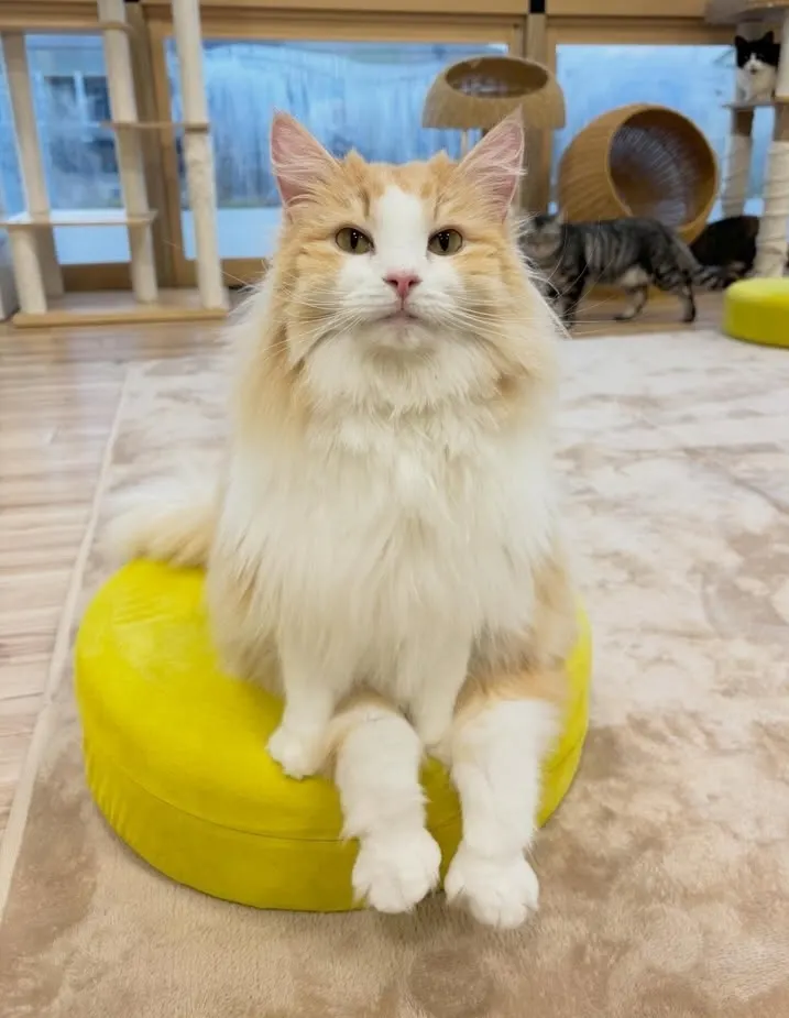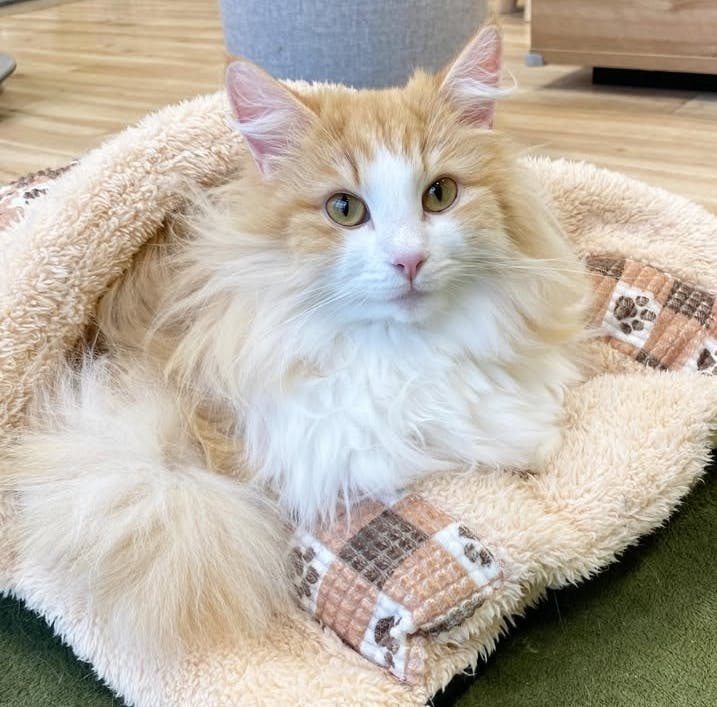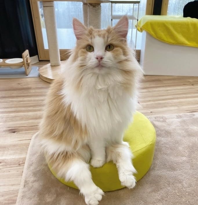 その愛くるしい姿でオープン当初からの人気者でお店の看板猫でスタッフの一員として後輩猫のお世話やお客様をおもてなしして心癒される存在であったとお聞きしております。