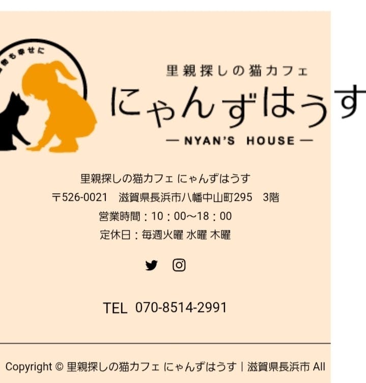※『里親探しの猫カフェ・にゃんずはうす』のお店は滋賀県長浜市にあり、ブリーダー崩壊で行き場を失った猫や保護団体から猫を引き取り、里親様へと引き継ぐことを目的として猫カフェを営われ多くの猫達がここで幸せを掴み里親様の元へと送り出されています。