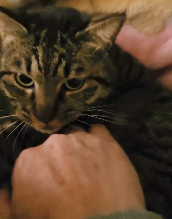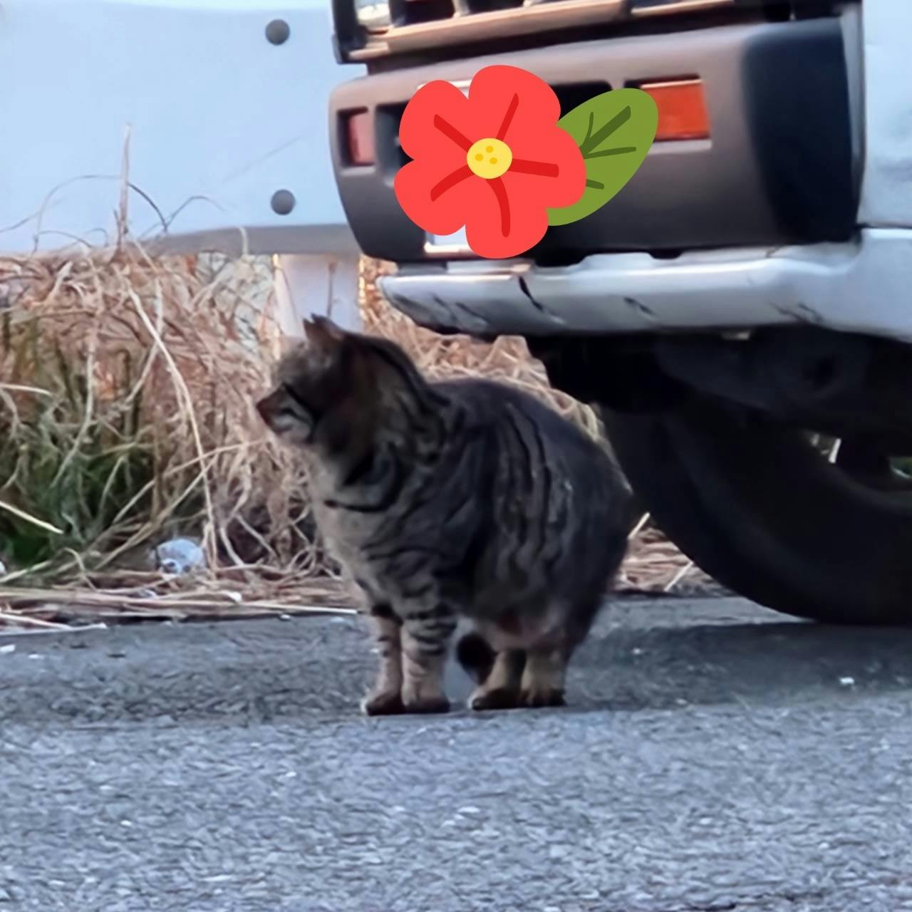 避妊去勢してリリースした猫達がいてる餌やり現場の猫です。びっこを引いてて保護になりました。近くに川があり向こう岸から無造作に積まれたテトラポッドを渡り命懸けで餌を食べにやってきます。前は橋が掛かっていたのですが取り壊されてテトラポッドからくる以外、道はありません。
